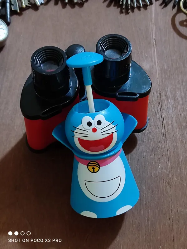 یک عدد دوربین شکاری البته طرح دوربینه جنسش پلاستیک محکمیه دور و نزدیکشم نشون میده در حد خودش این دوربین شکاری برای دکوری مناسبه یجور ماکت دوربینه البته اسباب بازی هم بعید میدونم باشه دیگه ظاهر و باطن مطابق تصاویر خرید کنین بهمراه یک عدد جاخلال دندونی نسبتا قدیمی آک نو نو قیمت برای جفتشه