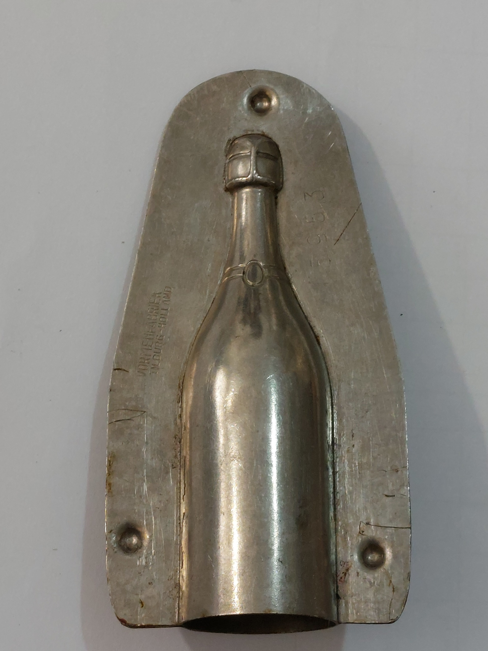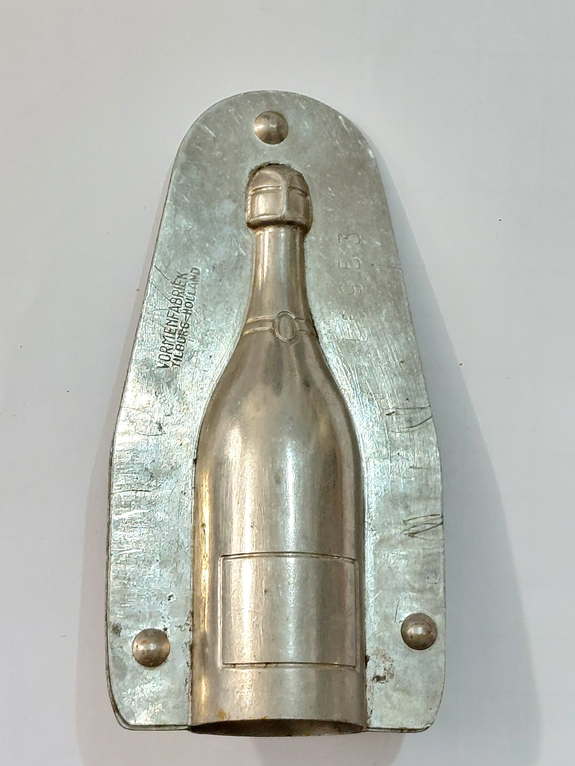 این قالب شکلات قدیمی از بطری شامپاین، بسیار ساده ساخته شده تا شکلاتسازان بتوانند در صورت نیاز آن را تزئین کنند. این قالب توسط کارخانهی ورمنفابریک، تیلبورگ، ساخته شده و نام و شمارهی سازنده روی آن حک شده است