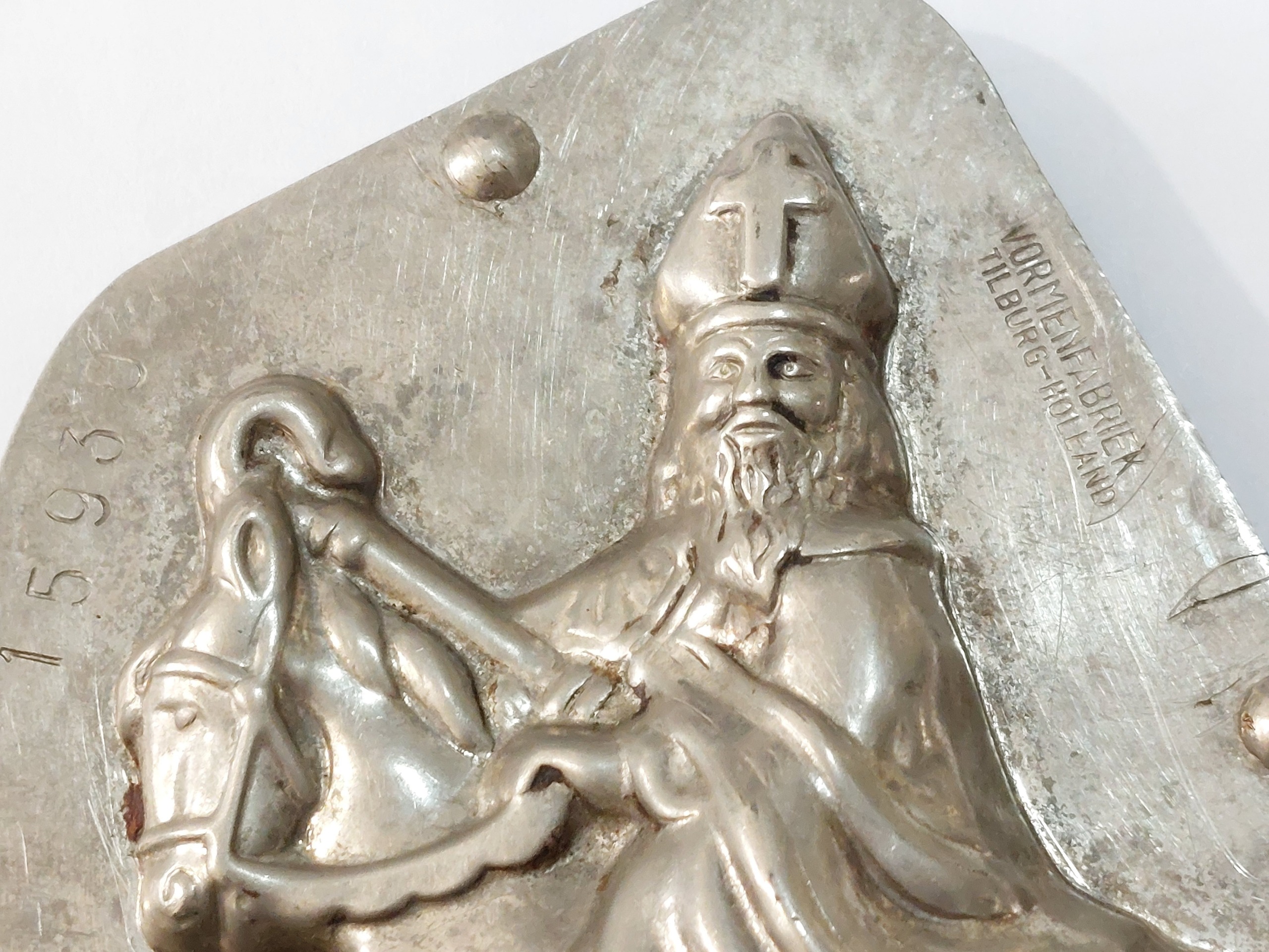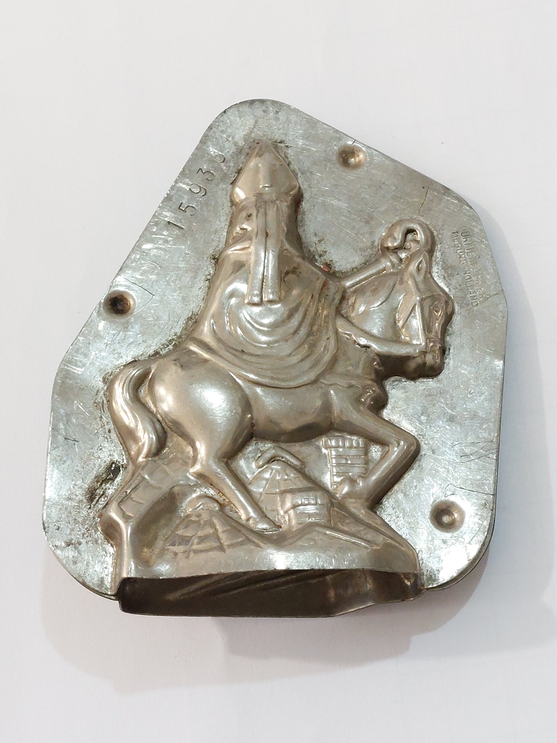 این یک قالب شکلات فلزی قدیمی است که برای ساخت مجسمههای شکلاتی سنت نیکلاس (Sinterklaas) استفاده میشود.
