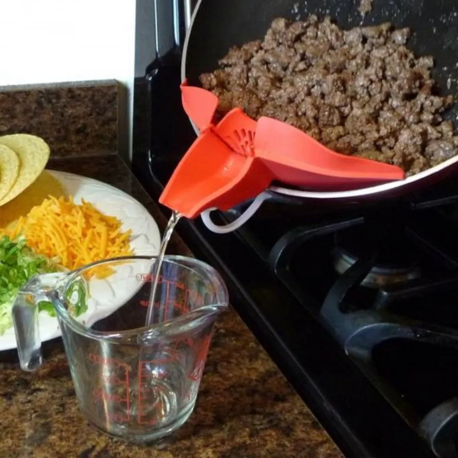 این دستگاه قابلیت جدا کردن روغن، آب، و مایعات، را دارد وسیله ای پر کاربرد دارای گیره اتصال به قابلمه و ماهیتابه. جنس سیلیکونی، رنگ قرمز تیره