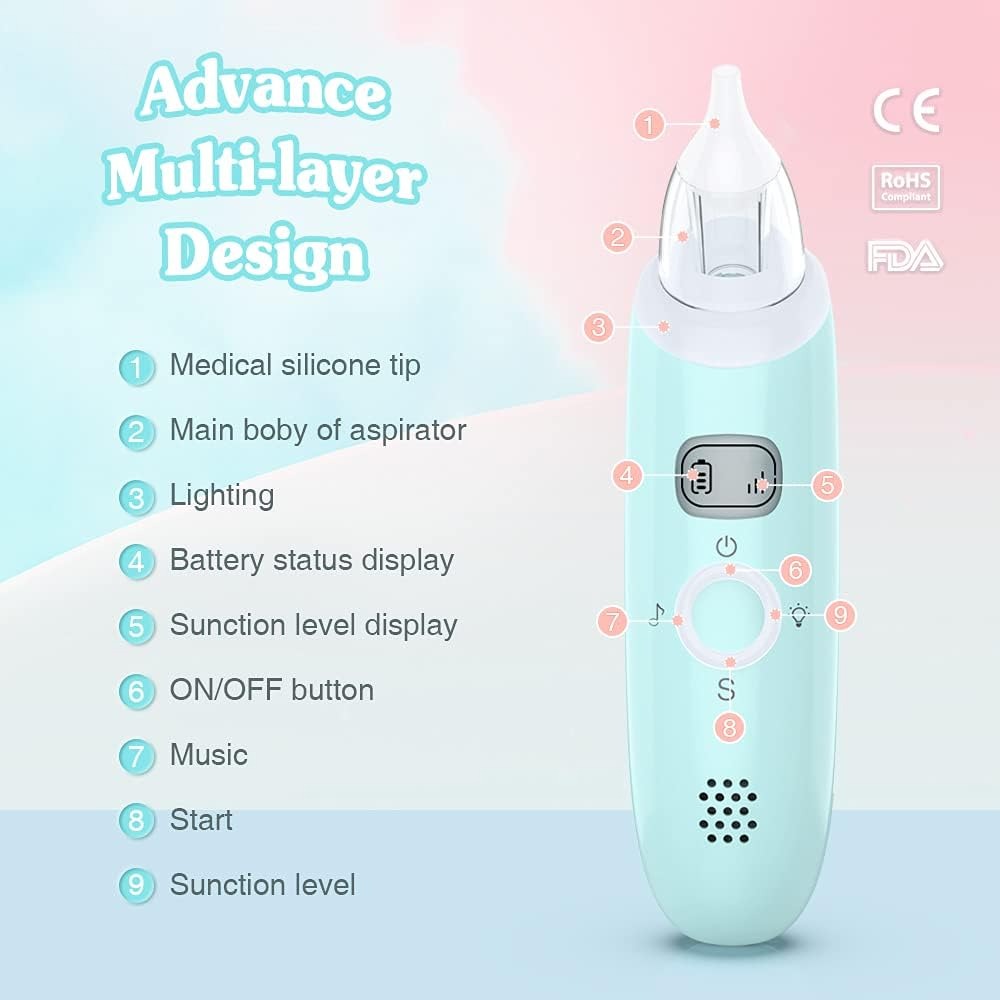 - آسپیراتور بینی ایمن و بهداشتی: آسپیراتور بینی به بدنه و نوک اصلی تقسیم می شود و از سیلیکون نرم مواد غذایی، BPA و لاتکس استفاده می کند، مقاوم در برابر حرارت (قرار دادن نازل ها در آب با دمای 212 درجه فارنهایت به مدت 3 دقیقه می تواند عمیقا تمیز شود)، از آسیب دیدن جلوگیری می کند. مخاط حساس بینی نوزاد و عفونت های متقابل. این بینی پاک کن برقی دارای گواهی FCC, CE, UKCA می باشد که می توانید بدون نگرانی آن را خریداری کنید.