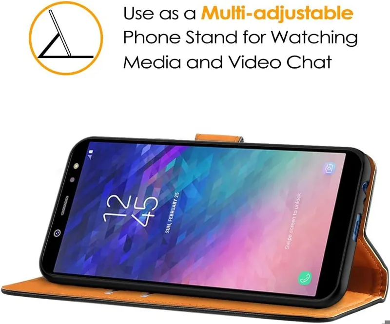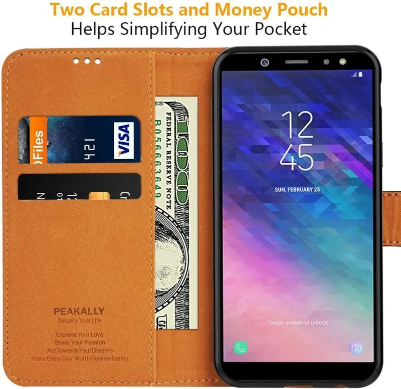 • طراحی کاربردی با محفظه کیف پول و کارت قاب چرمی برای Samsung Galaxy A6 2018 ارائه میشود: دو محفظه برای کارتهای ATM و یک جیب بزرگ برای پول نقد. آنها به شما کمک می کنند همه چیزهای روزمره خود را در یک مکان متصل کنید.