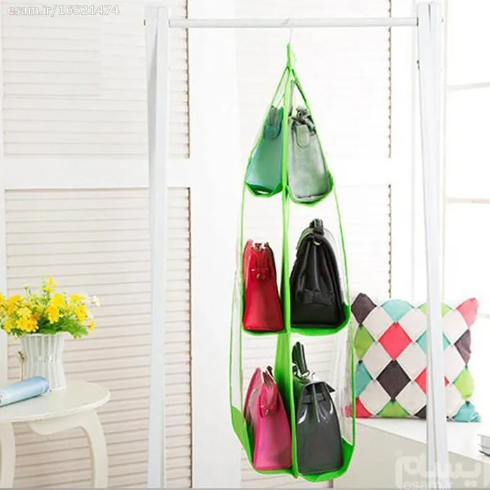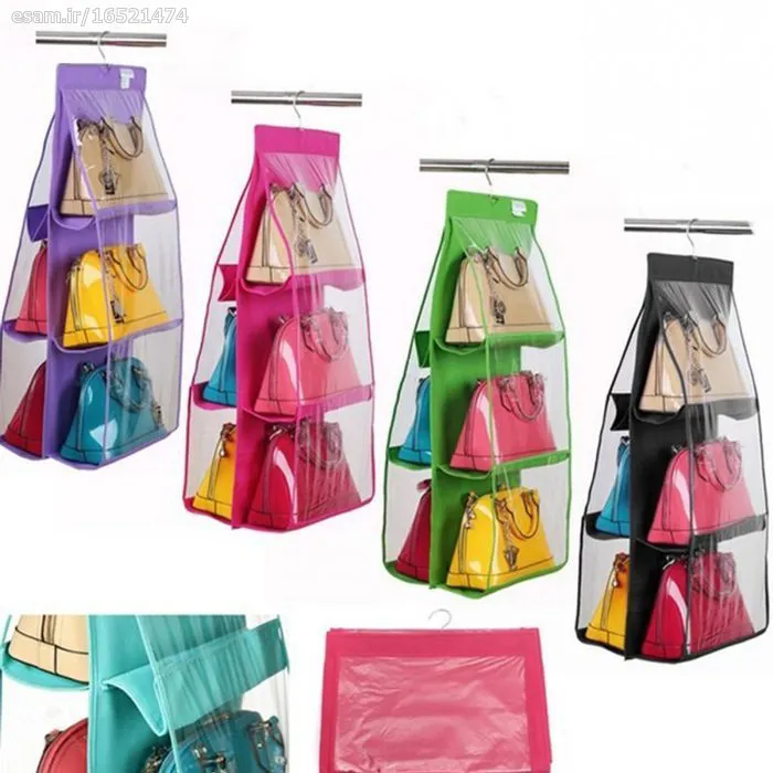 نگهداری 6 عدد کیف دستی زنانه را به شما خواهد داد . پوشش بیرونی نگهدانده کیف ها از جنس پلاستیک شفاف می باشد که مانع از کثیف شدن کیف می شود . از این محصول علاوه بر کیف می توان جهت نگهداری کفش نیز استفاده نمود.
