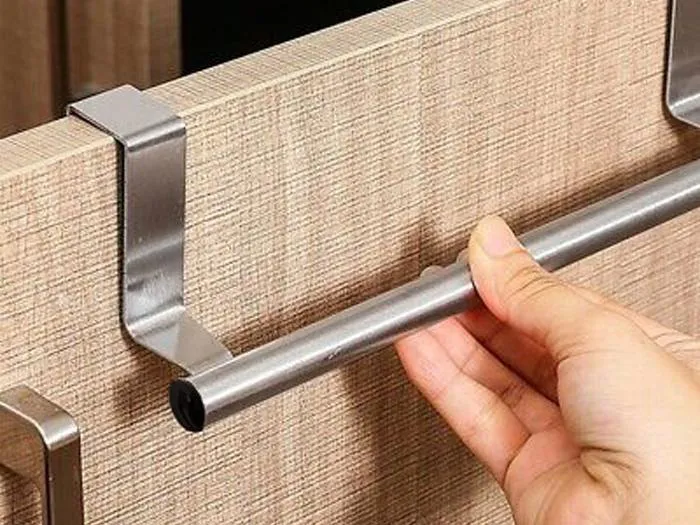 آویز حوله کابینت آشپزخانه از جنس فلز لعاب کاری شده ، مقاوم در برابر رطوبت و همچنین استحکام فوق العاده بالا یک وسیله کاربردی در آشپزخانه می باشد که به شما امکان آویزان کردن حوله ، دستکش و دستمال را روی درب کابیت می دهد. با خرید آویز حوله کابینتی علاوه بر نظم بخشیدن به محیط آشپزخانه ، دسترسی شما به حوله . دستکش هنگام آشپزی و شستشوی ظروف آسان تر خواهد شد.