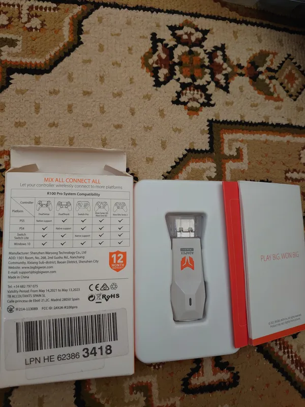 مبدل دسته حرفه ای وارداتی از برند Big Big Won که به صورت بی سیم دسته های کنسول های ایکس باکس ، PS4 ، PS5 و نینتندو سوییچ را به صورت متقابل به این کنسول ها و PC و PS3 متصل میکند.