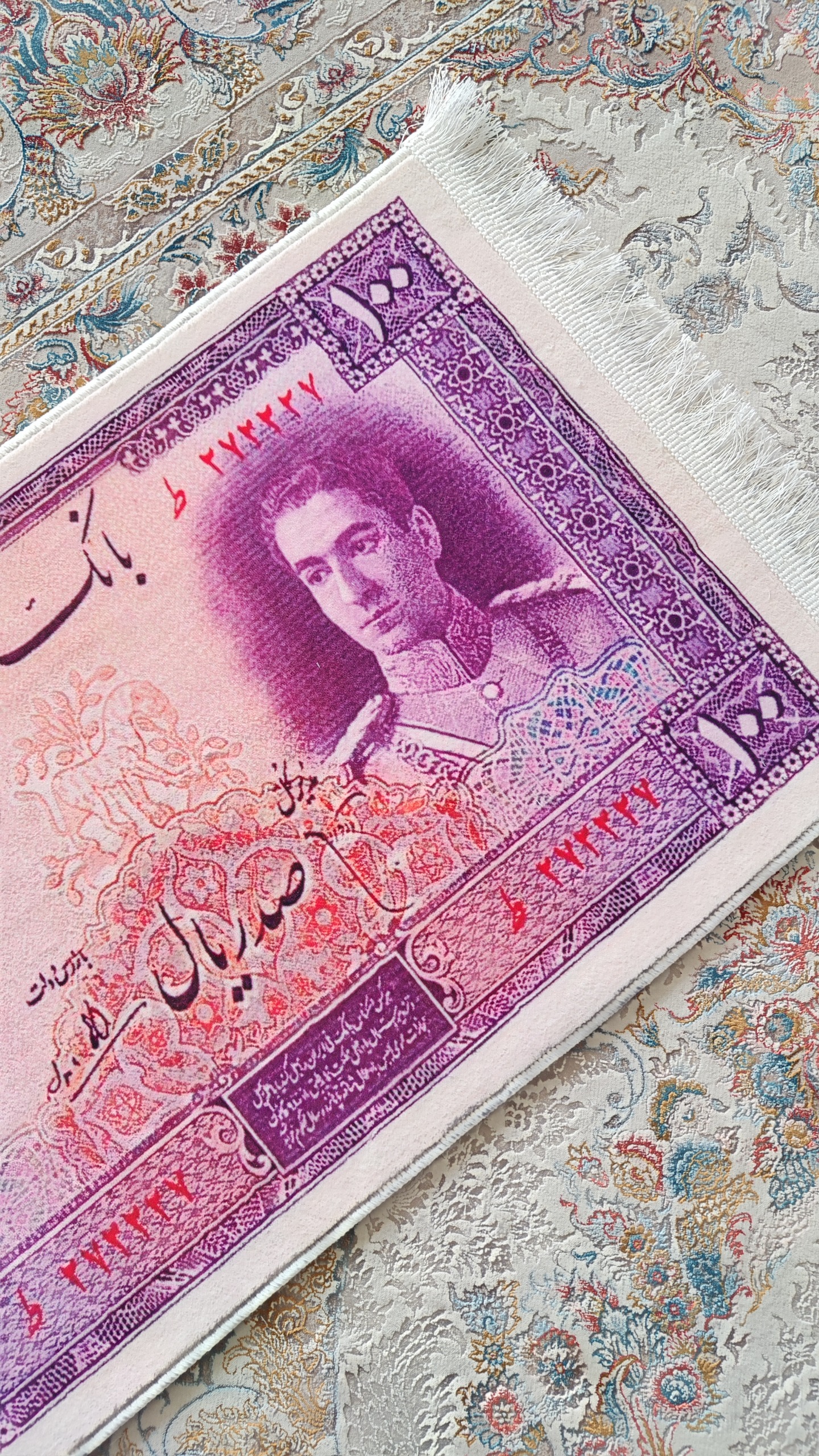 فرش اسکناس زیبای ماشینی 100 ریالی بنفش محمدرضاشاه پهلوی