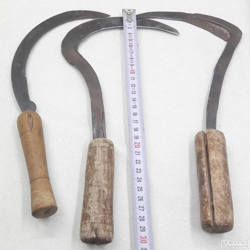 .. این 3 عدد داس کوچک تیز نیستن و اگر بخواهید استفاده کنید باید حتما تیز بشن .. بدلیل قدمت بالا کمی زنگار روشون دارن . قیمت مال همه است .
