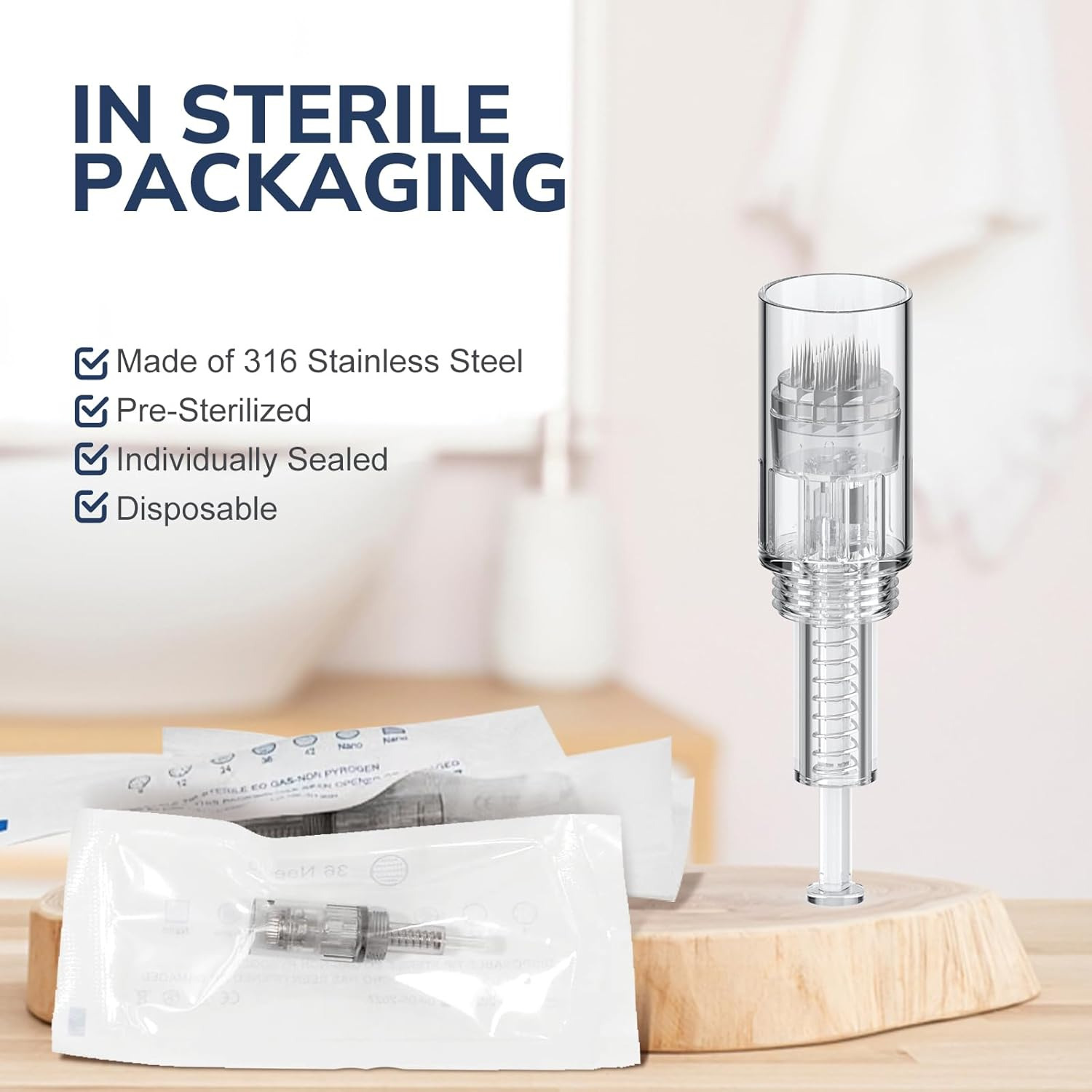 (ایمن و بدون آلودگی): هر کارتریج میکرو سوزنی به صورت جداگانه بستهبندی شده و یک محصول استریل یکبار مصرف است. عفونت متقاطع رخ نمیدهد و به پوست شما آسیبی نمیرساند. بنابراین میتوانید با اطمینان از آن استفاده کنید.