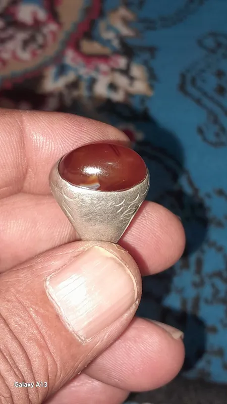 انگشتر کهنه عقیق یمنی رگه خونی