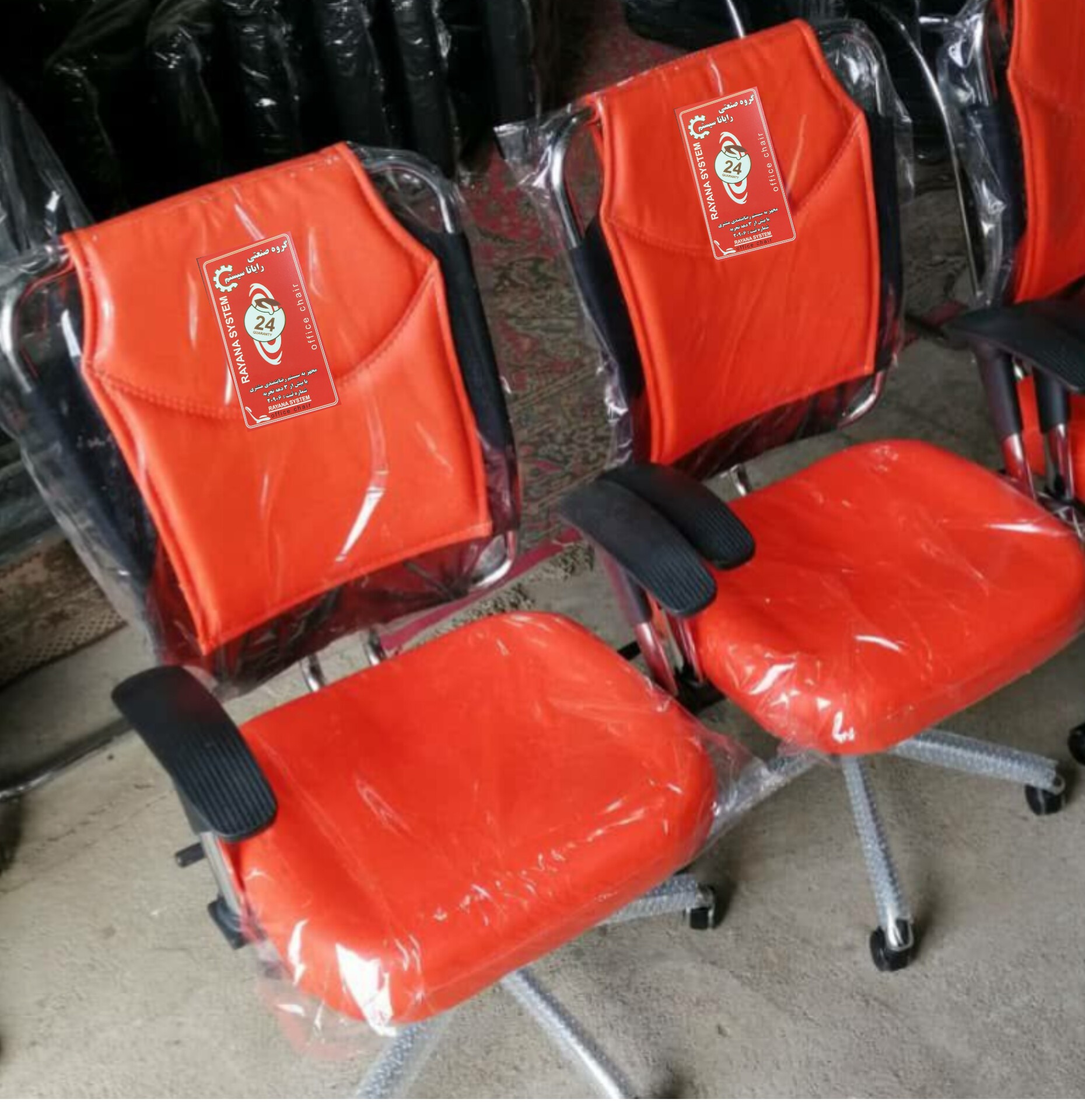 کف و پشت فوم سرد چرم درجه یک قابلیت تنظیم ارتفاع و تکیه گاه چرخ ژله ای پایه 33 آبکاری شده گارانتی کتبی دوساله