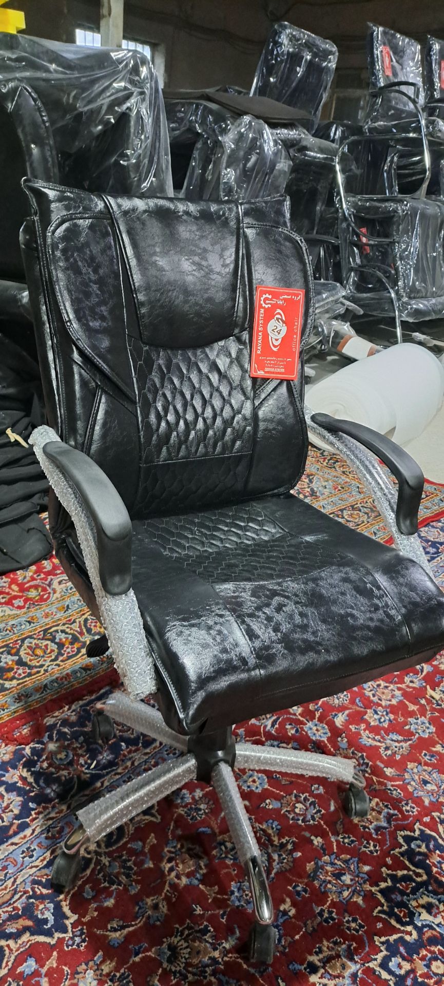 کف و پشت فوم سرد چرم درجه یک قابلیت تنظیم ارتفاع و تکیه گاه چرخ ژله ای پایه 33 آبکاری شده گارانتی کتبی دوساله