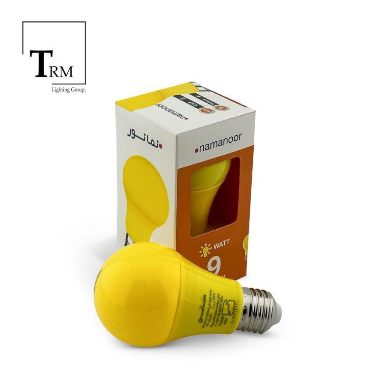 لامپ حبابی ال ای دی 9 وات زرد نمانور
