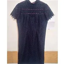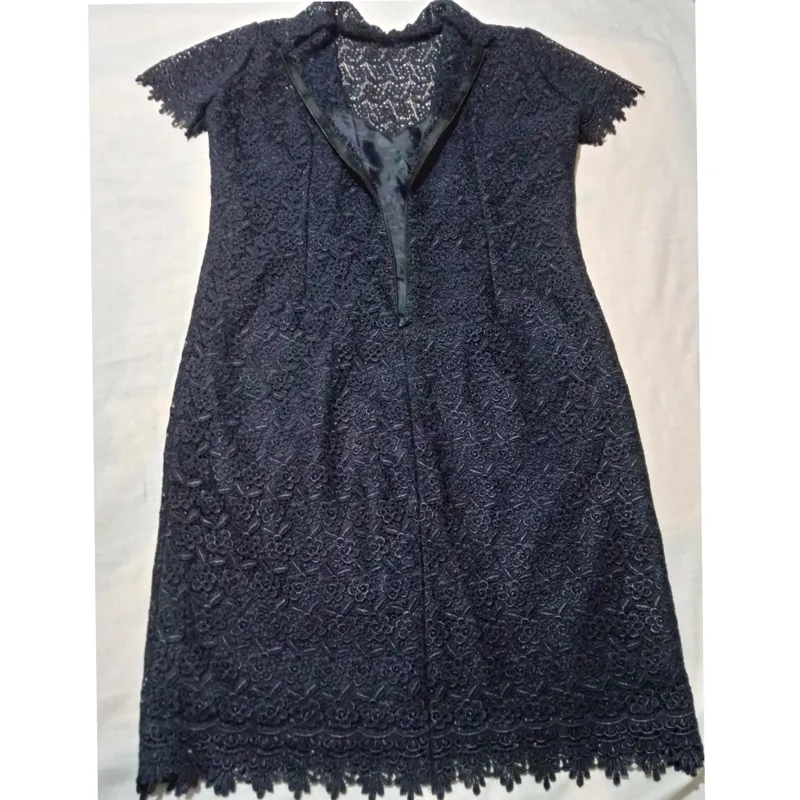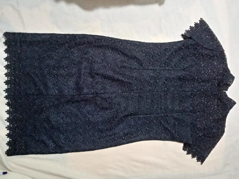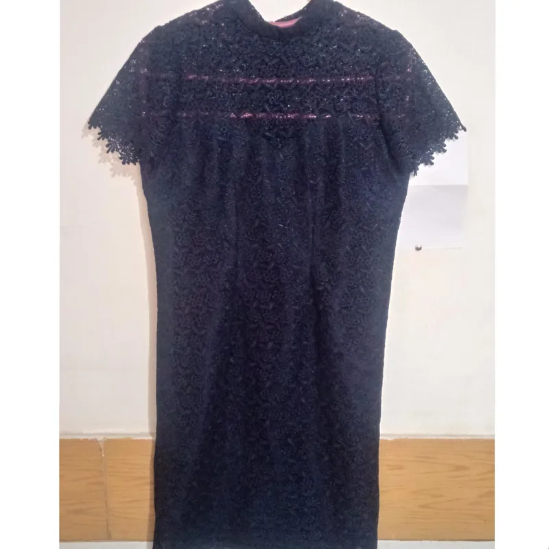 لباس مجلسی گیپور رنگ سرمه ای سیر آستین کوتاه با آستر ساتن و قد 90 سانت و کمر 40 و سر شانه 37 .قسمت سینه به بالا آستر نداره مطابق عکس اول .آسترش هم سرمه ای هست.متاسفانه به علت نداشتن دوربین باکیفیت و شرایط عکسبرداری خوب کلا زیبایی لباس محو شده و مشخص نیست.جنس بسیار باکیفیت و سنگین با آستر ساتن باکیفیت .عکس اول با روشنایی بالا گرفته شده و رنگ واقعی لباس عکس دوم و بعدی ها است و رنگ عکس اول روشن به خاطر مشخص شدن بهتر جزییات لباس گرفته شده....درجه یک و بسیار شیک مخصوص سخت پسندان و شیک پوشان....عکس های بیشتر خواستید پیام بدید...