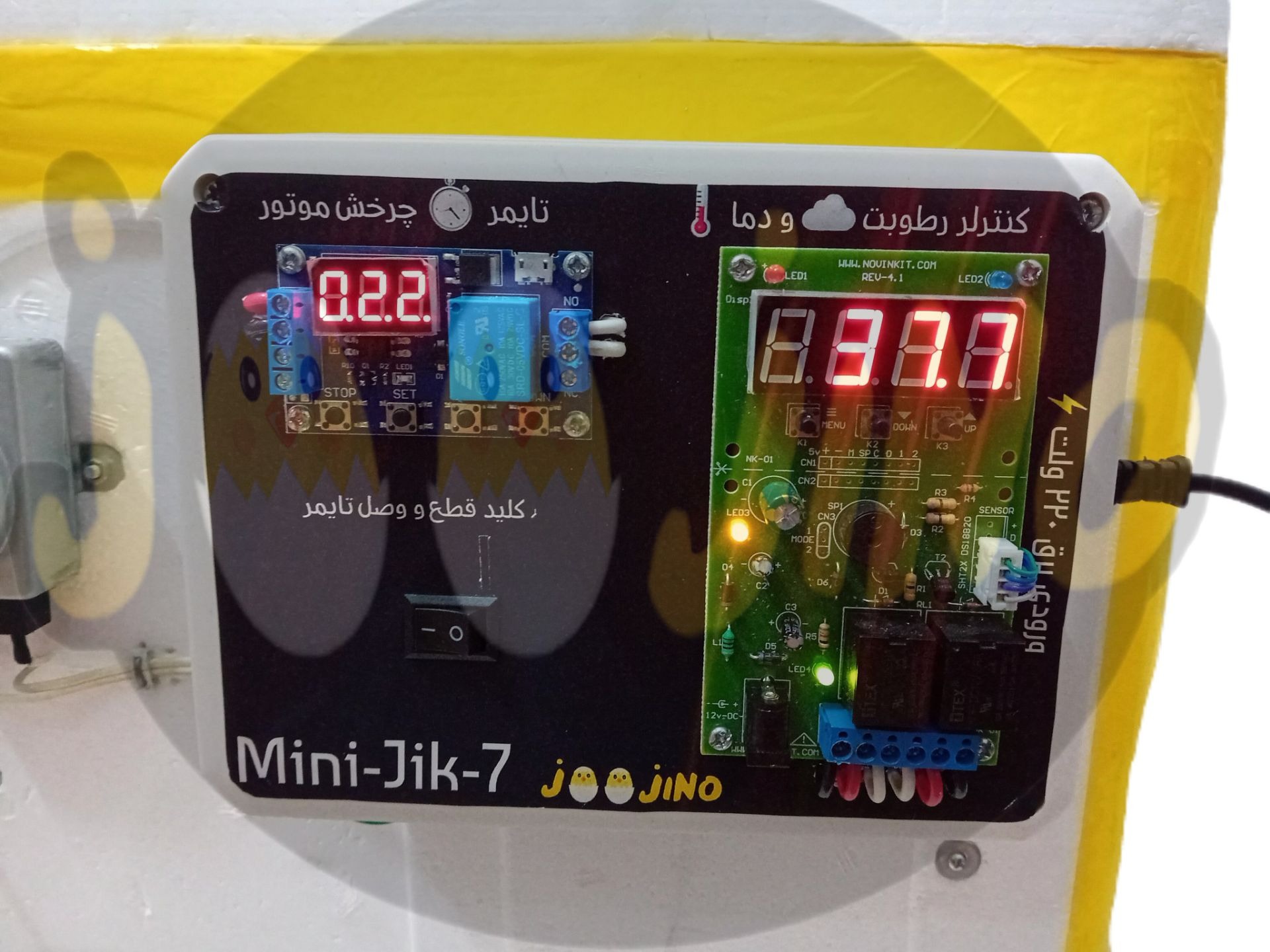 کنترلر استفاده شده در این دستگاه یکی از مرغوب ترین کنترلر ها میباشد که قابلیت کنترل همزمان دما و رطوبت را دارد همچنین سنسور SHT20 نمایش دقیق دما و رطوبت را به ما میدهد .