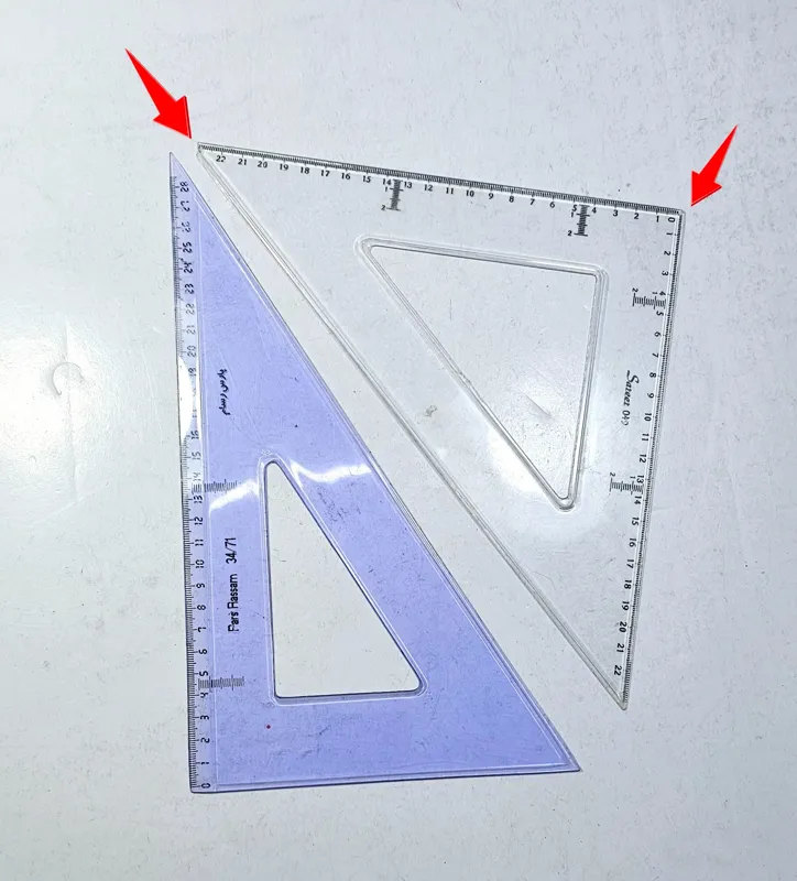 6 عدد گونیا و شابلون مهندسی با مارک های مختلف و قدیمی ، به علت قدمت بعضی از شابلون ها و یا گونیاها دارای ترک و شکستگی های جزئی میباشد که در تصاویر با فلش مشخص شده است
