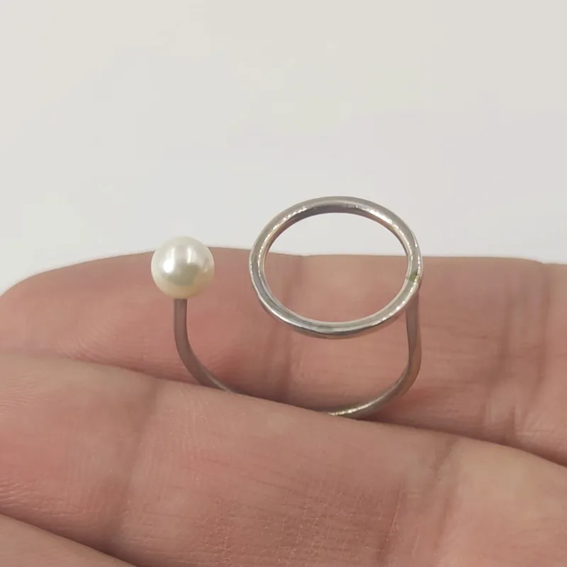 انگشتر زنانه نقره و مروارید مصنوعی (مدل مینیمال)