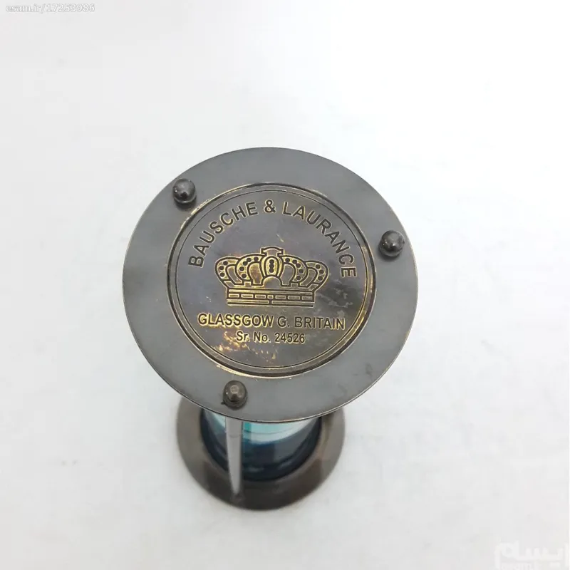 ساعت شنی برنزی انگلیسی طرح قدیم درون مایع ارتفاع 17 سانت قطر 7 سانت وزن 380گرم ساخت هند مهم (رنگ بندی اب ساعت شنی در موقع ارسال متغییر است ممکنه رنگ اب ابی و یا قرمز و.... باشد )