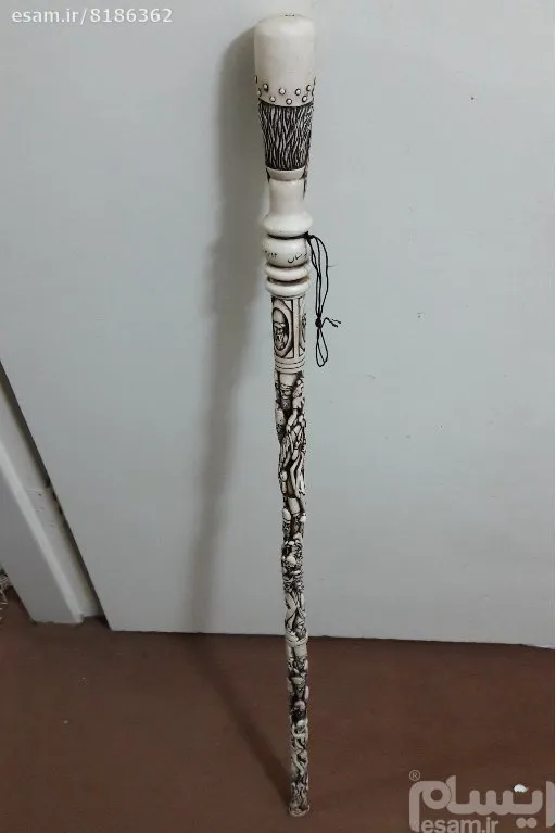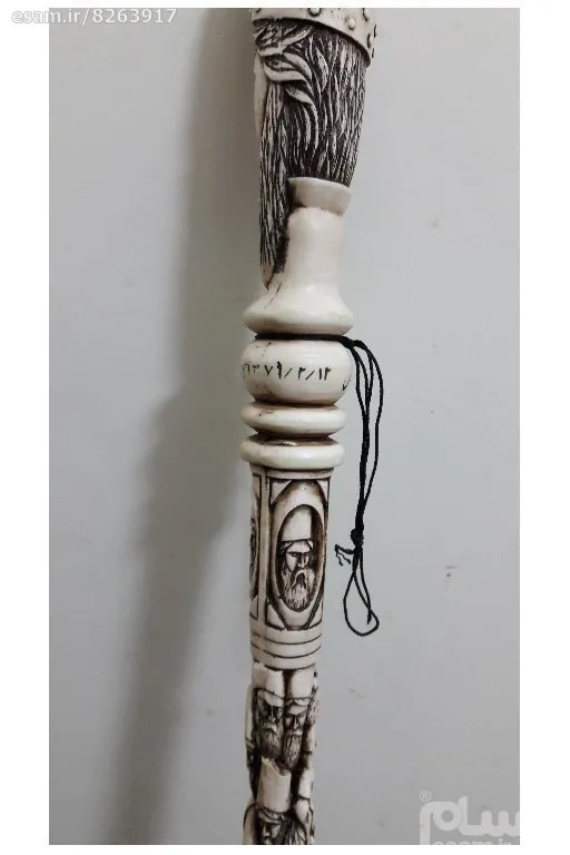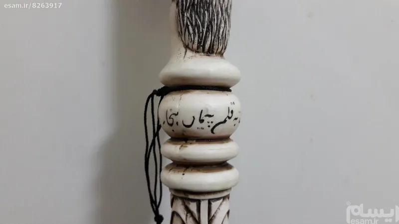 عصا نقش برجسته درویش بسیار زیبا اسم استاد و تاریخ ساخت حک شده