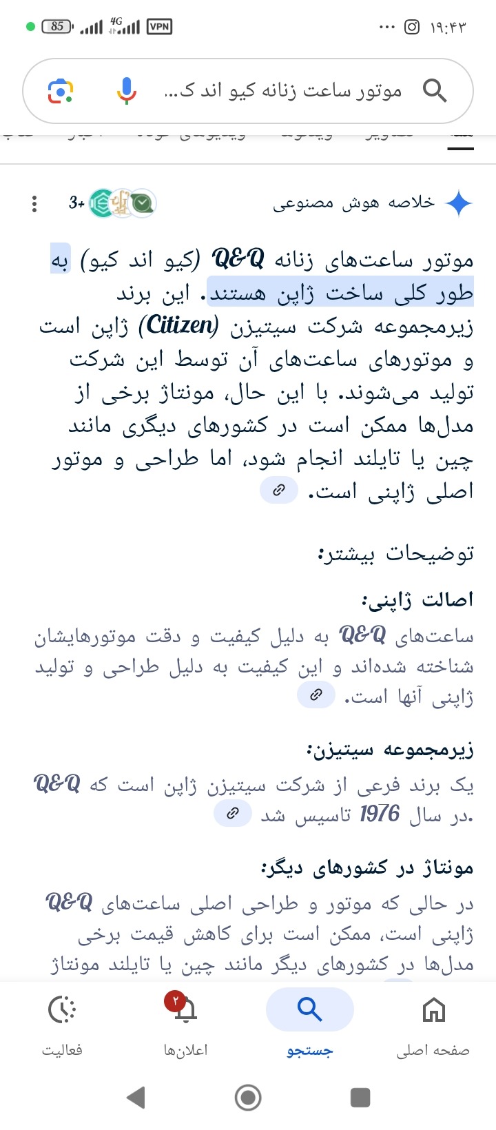 سلام دوستان یک عدد ساعت کیو اند کیو اورجینال به علت نیاز مالی تقریباً به نصف قیمت فروخته میشود خانمها از دست ندید چون قیمت این سعت در سایتهای مختلف حدوداً 6 میلیون هست در حد نو هست و دیگه همچنین فرصتی براتون پیش نمیاد میتونید سرچ کنی از گوگل قیمتش رو در بیارید خلاصه خانمها از دست ندید این ساعی خیلی زیبارو... ممنون از برنامه ایسام . سازنده محترمشون.... یا علی