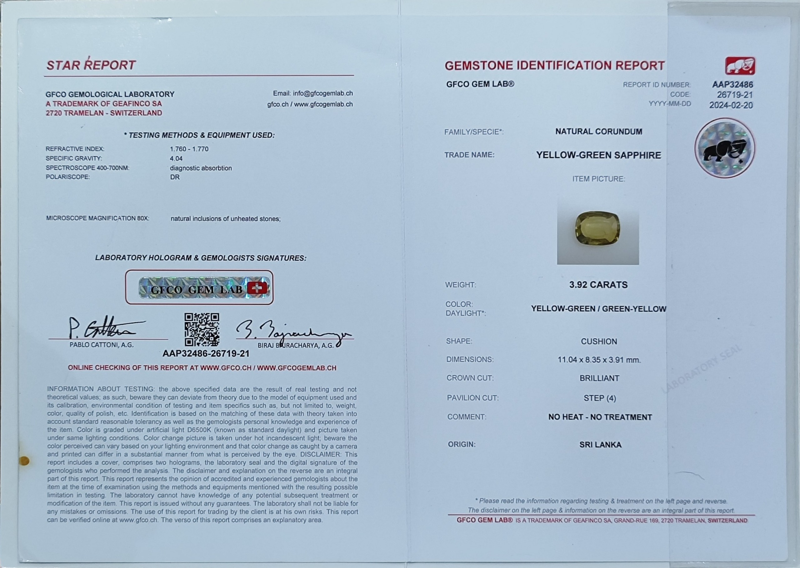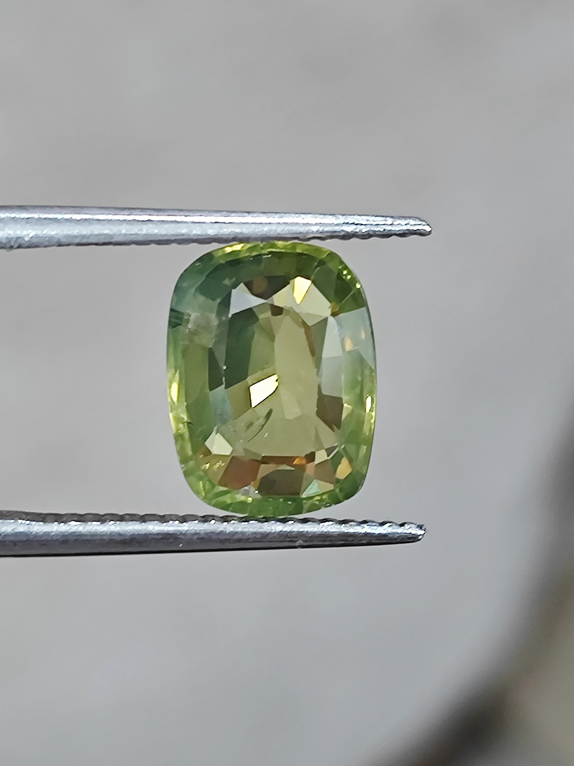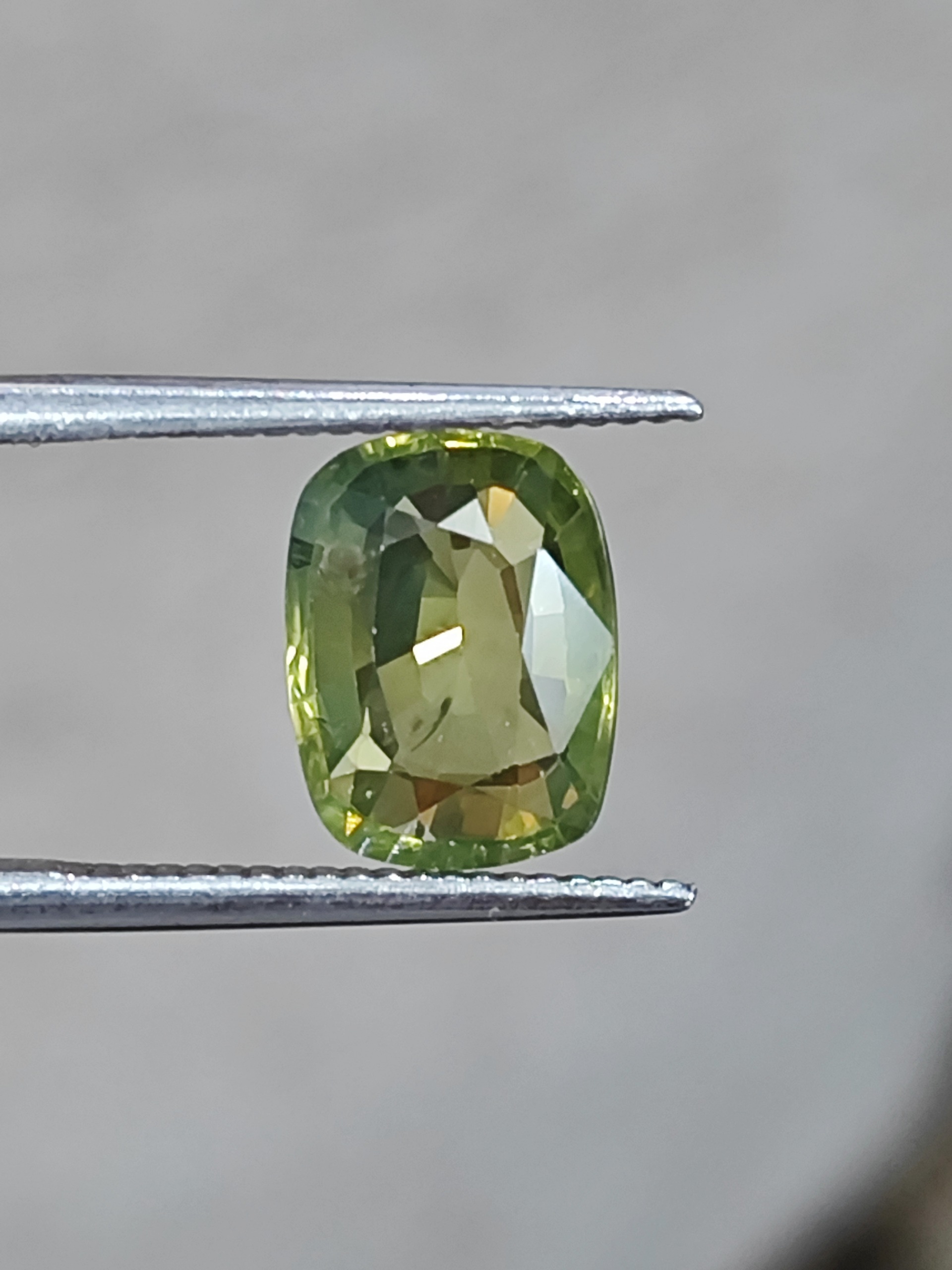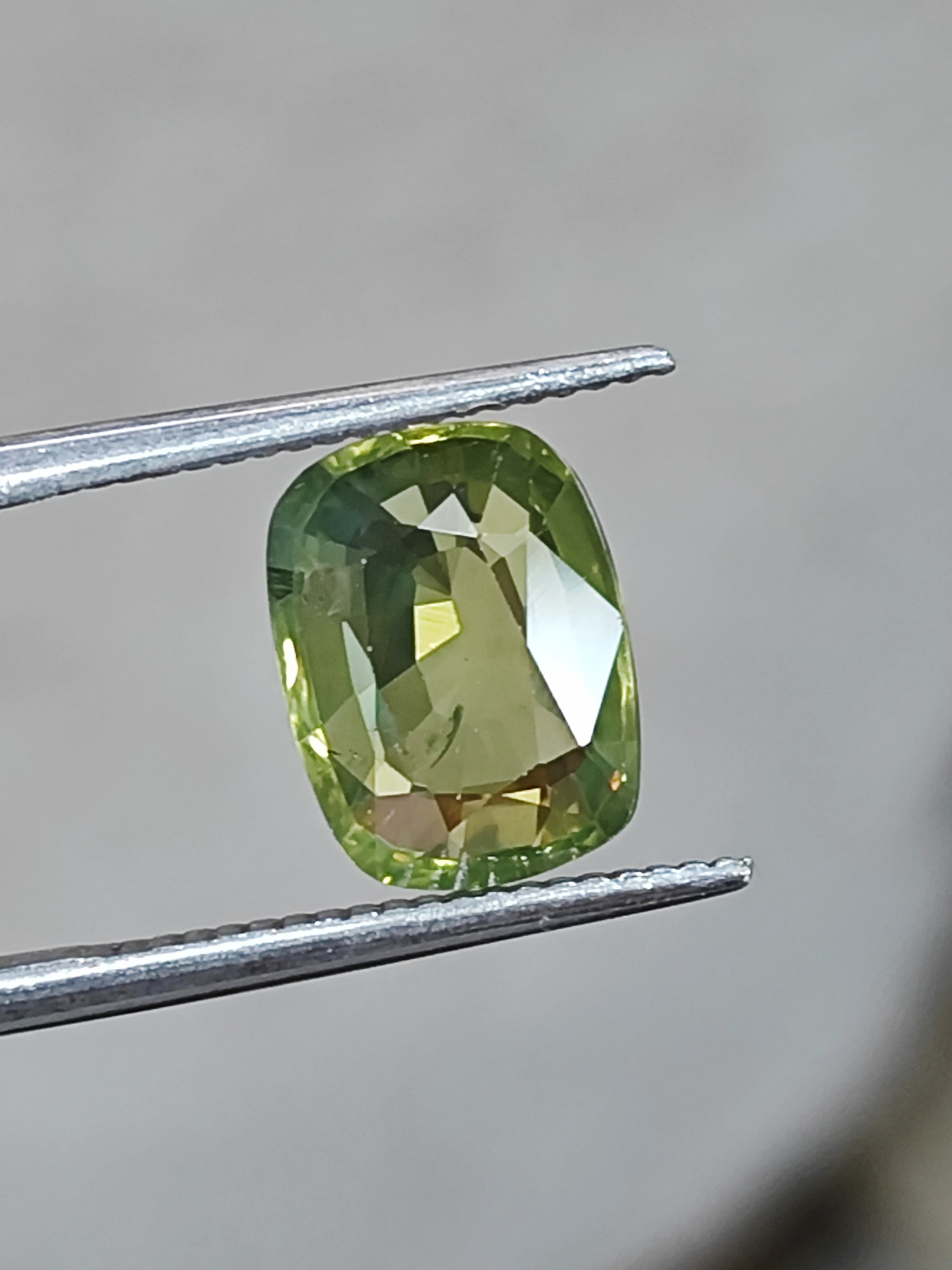 یاقوت انهیت سریلانکا به وزن حدودا 4 قیراط بدون هیچگونه بهسازی رنگ سبز و زرد بسیار خاص با شناسنامه معتبر