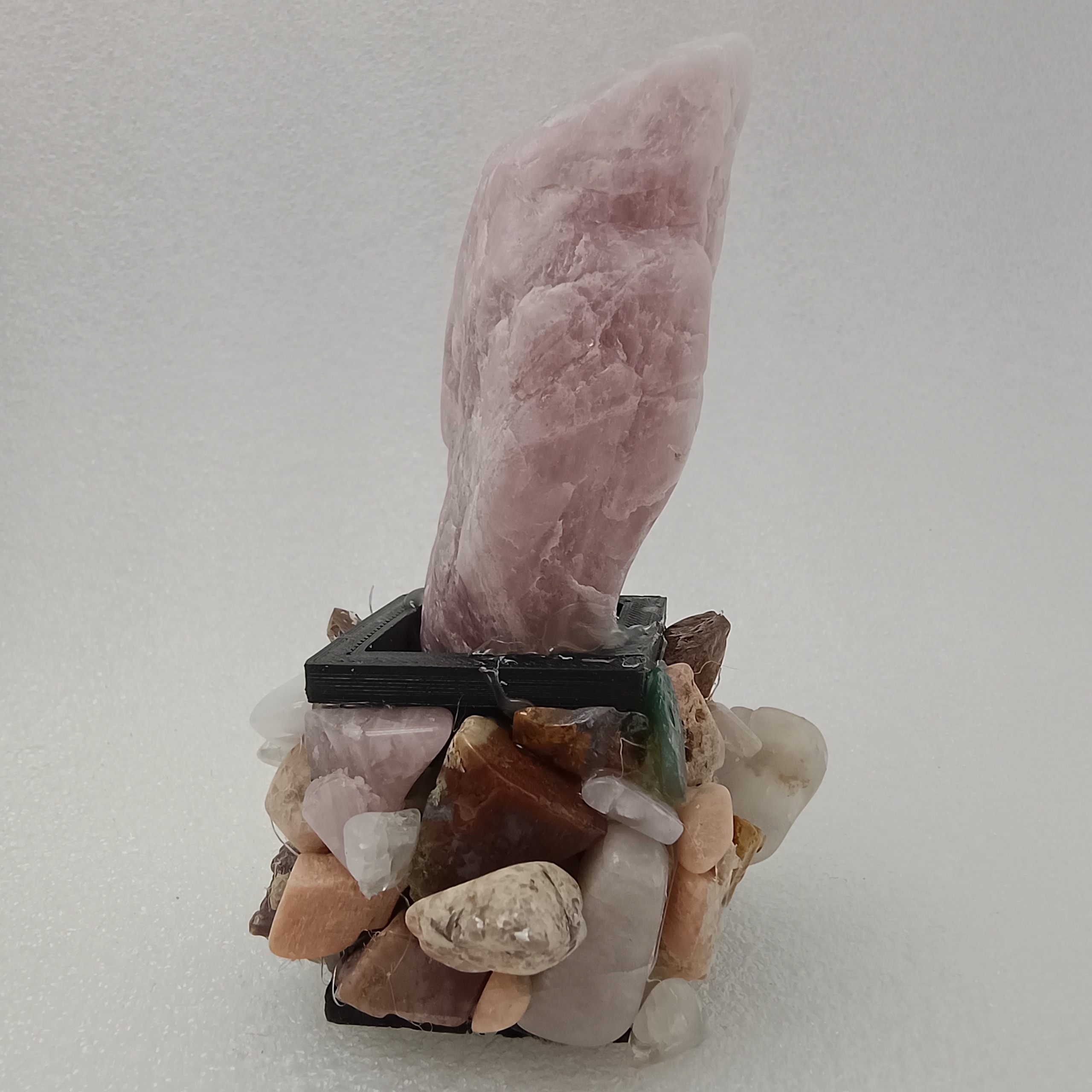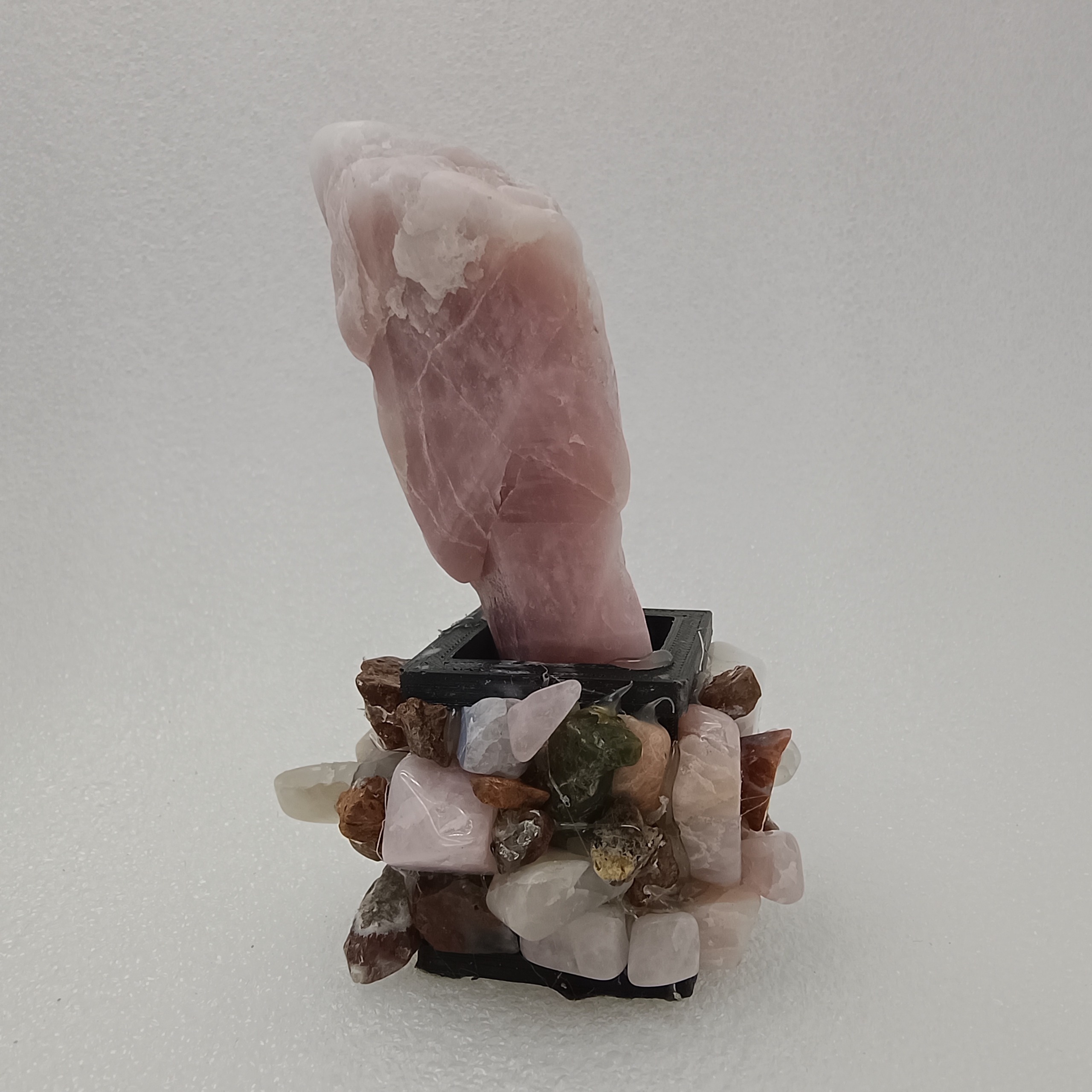 نام سنگ: سنگ اصلی رز کوارتز، در قسمت پایه رز کوارتز،عقیق،ژاسپر و ارتوکلاز و.. قرار دارد