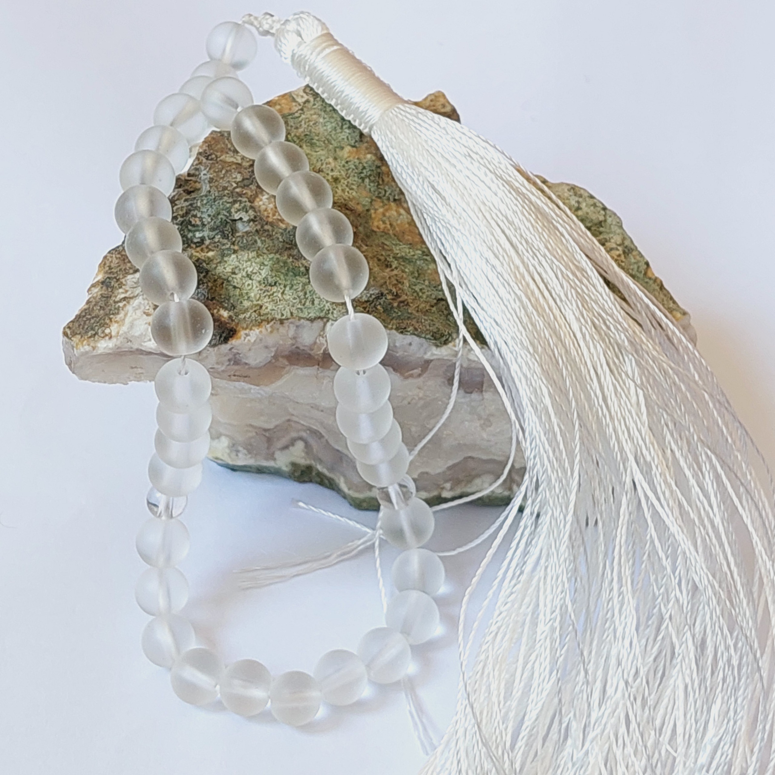 تسبیح 33دانه سنگ معدنی کوارتز  با سر تسبیح دستباف