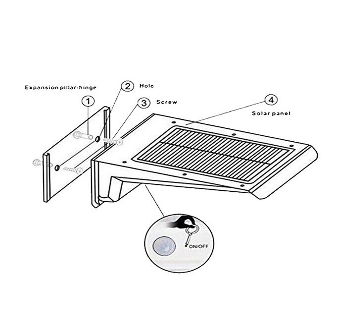 که بر روی خود چراغ نصب میباشد .دارای تعداد 20 عدد چیپ LED-SMD با عمر طولانی و نور دهی مناسب ،دارای سنسور حرکتی که با تشخیص حرکت در محیط از حالت نور کم به نور زیاد تبدیل میشود و بعد از مدت 15 ثانیه به حالت قبل باز میگردد که این قابلیت باعث ذخیره انرژی و نوردهی