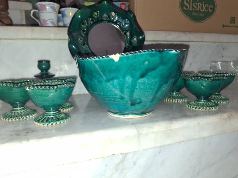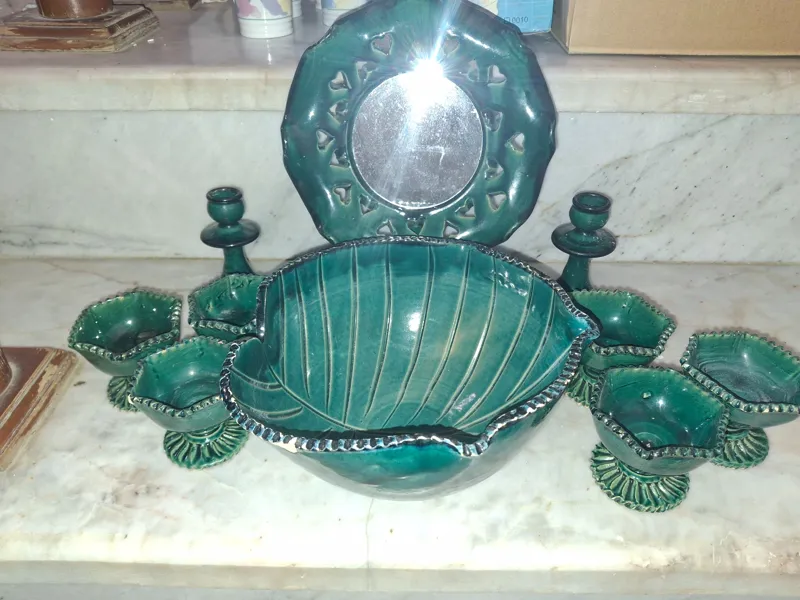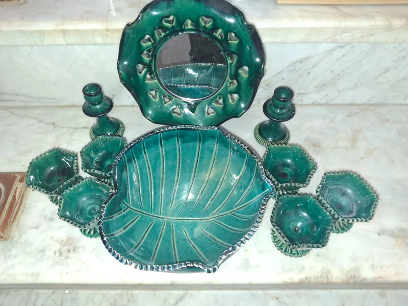 هفت سین سفالی لعابی 10 پارچه سبز