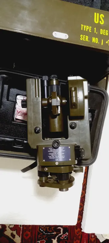 دوربین تئودولیت.تراز یاب و نقشه برداری آمریکایی 1976 نونو دارای دو جعبه زد آب ..این دوربین نونو میباشد و حتی در بدنه های جعبه هاش هم کوچکترین خطی نیافتاده ..وبسیار دقیق و کمیاب وشاید نایاب میباشد که در سایتهای خارجی قیمتش رو 4000هزار دلار زدن البته با یک جعبه..خلاصه هم برای کلکسیونی بسیار کمیاب و عالی هستش و هم کار که نونو و دقیق و شماره یک میباشد