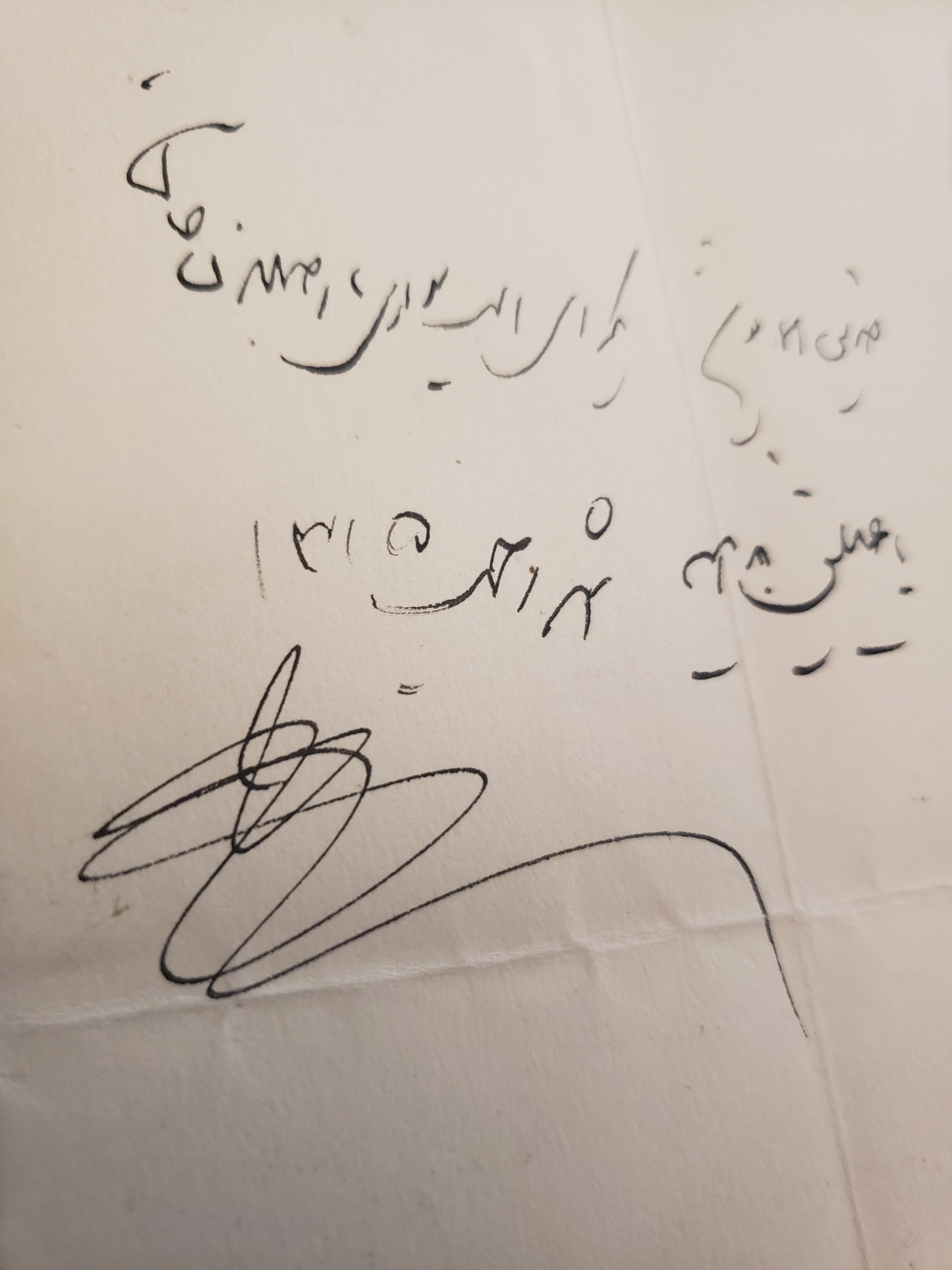 دستخط و امضا مظفرالدین شاه بر کاغذ فیلیگران زیبا