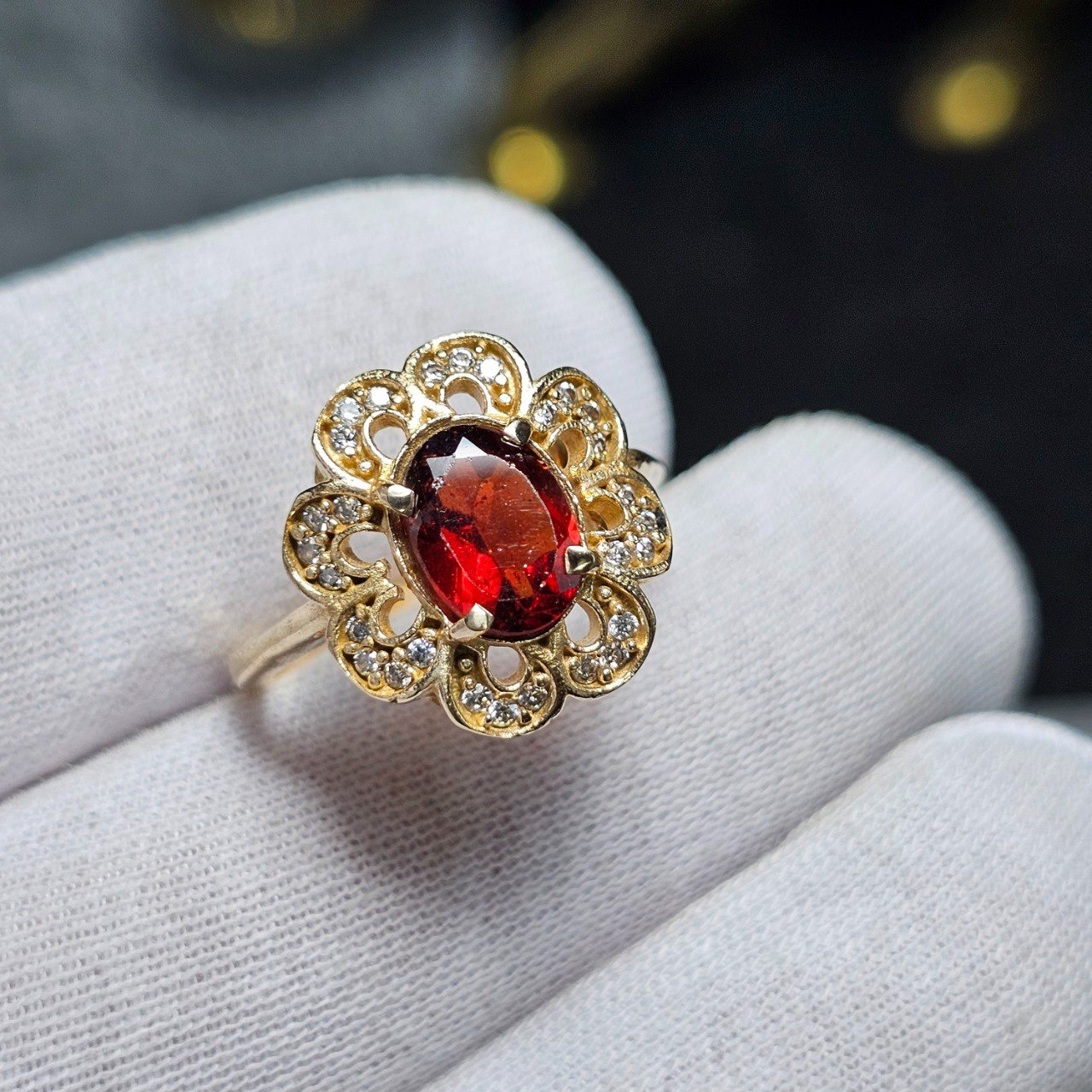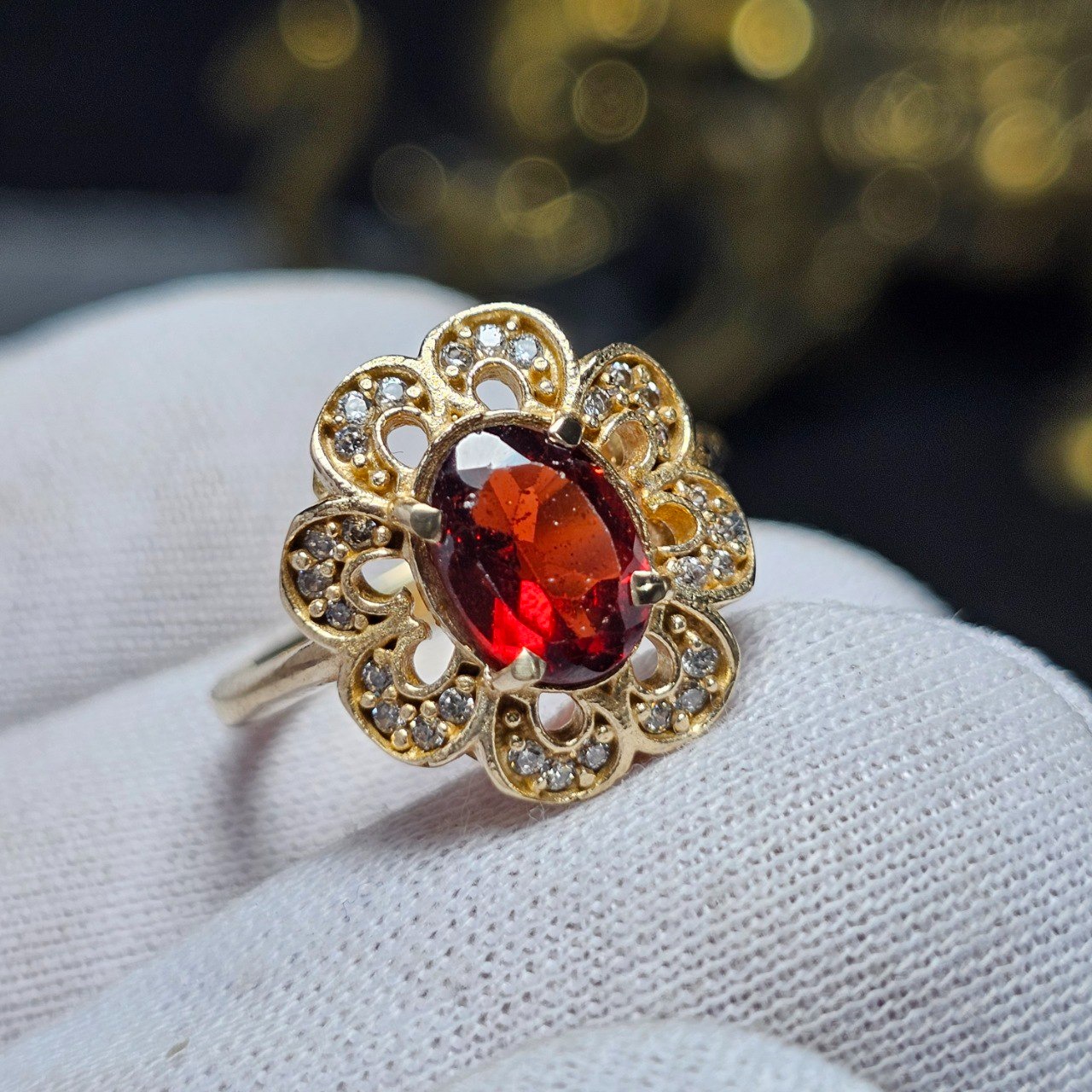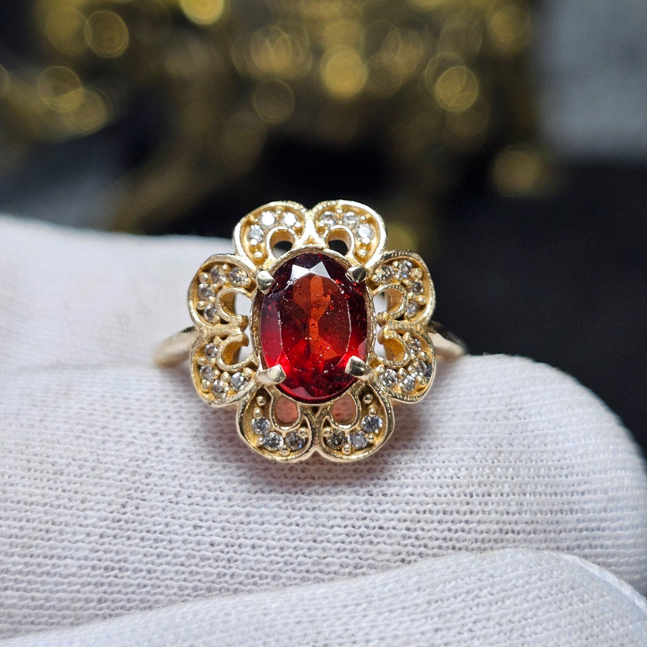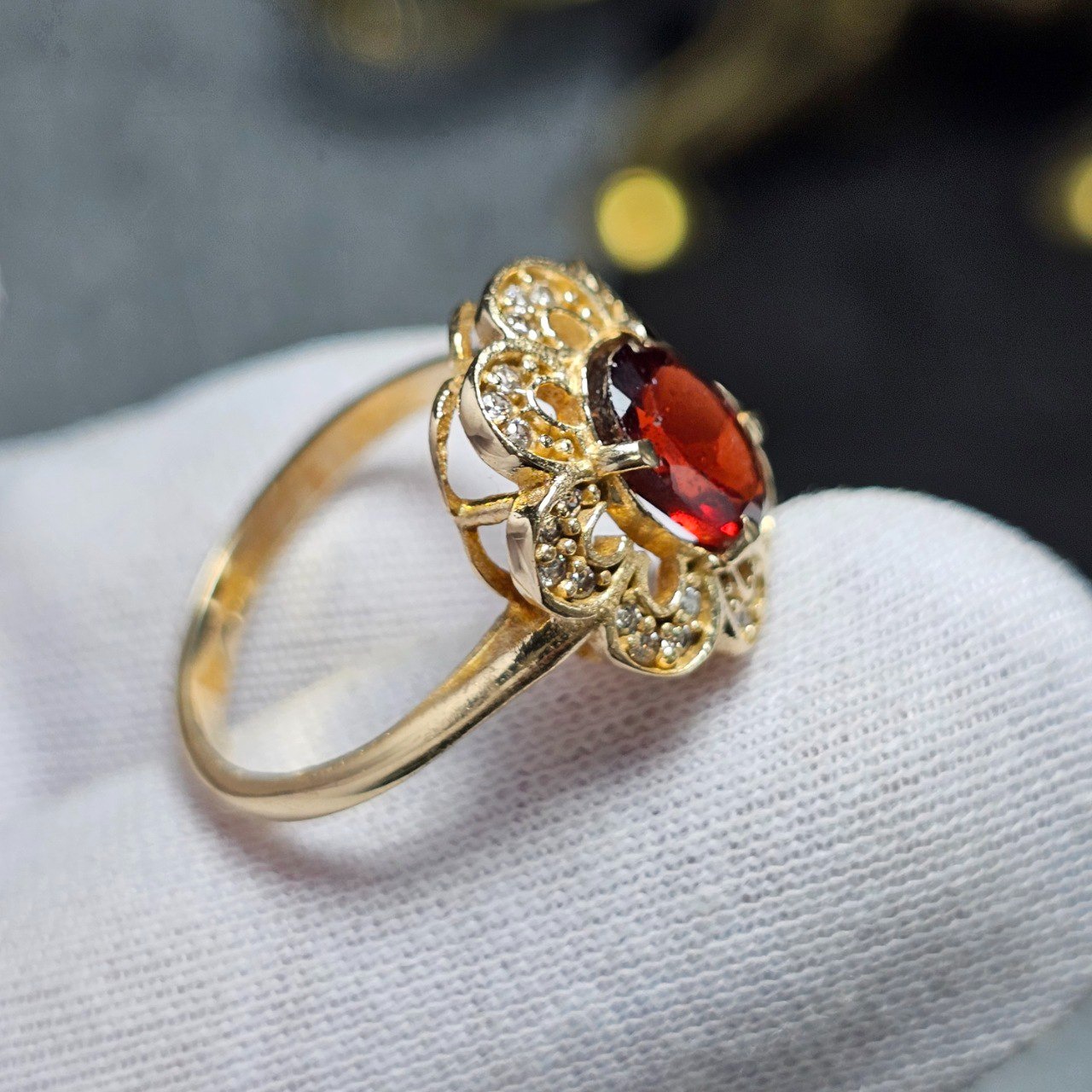 انگشترطلاروس باسنگ گارنت رودولایت معدنی کد34610