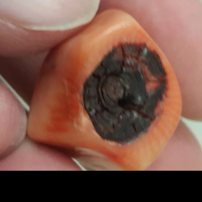 یک قطعه مرجان قرمز رنگ سوراخ دار قدیمی