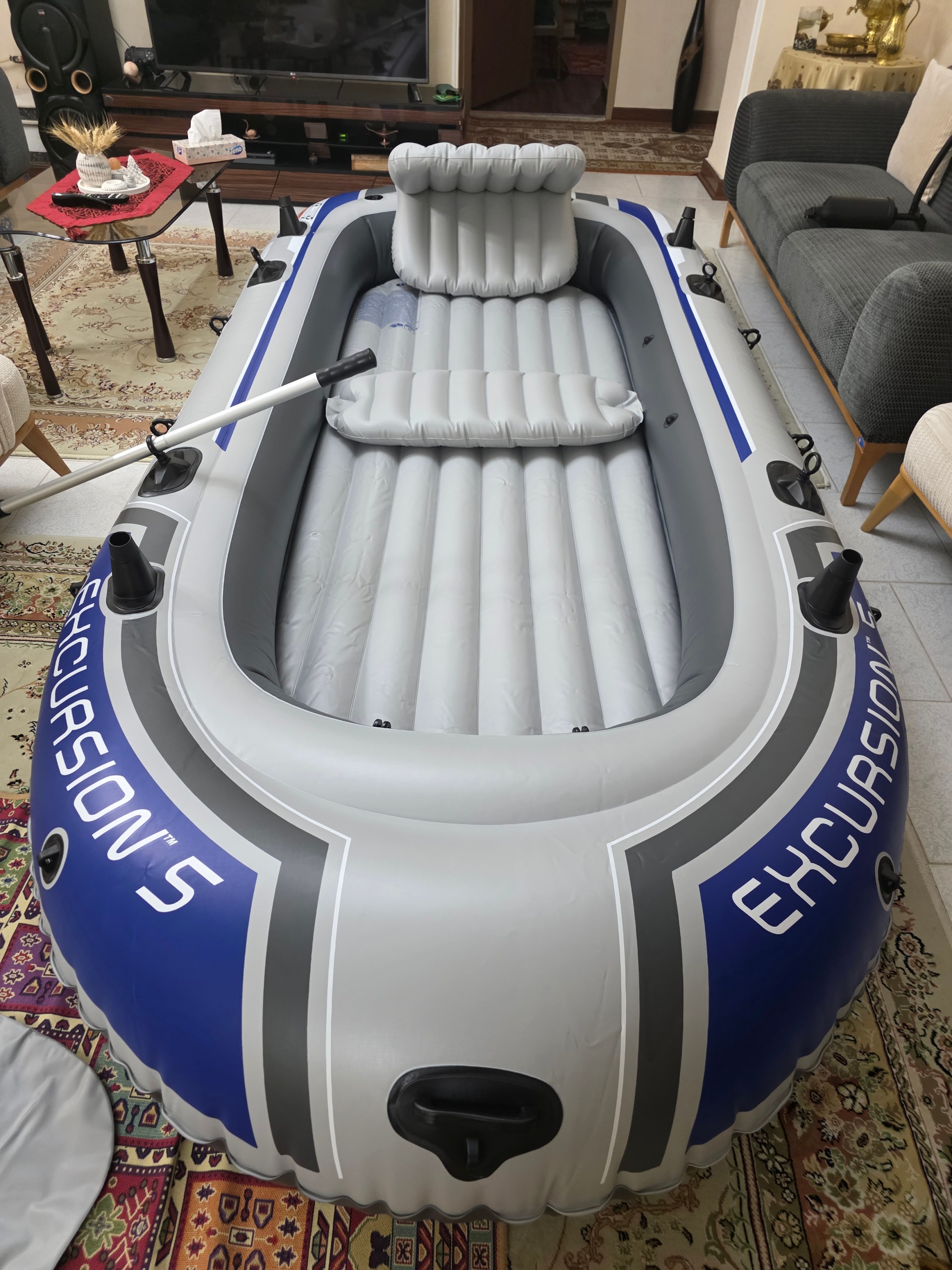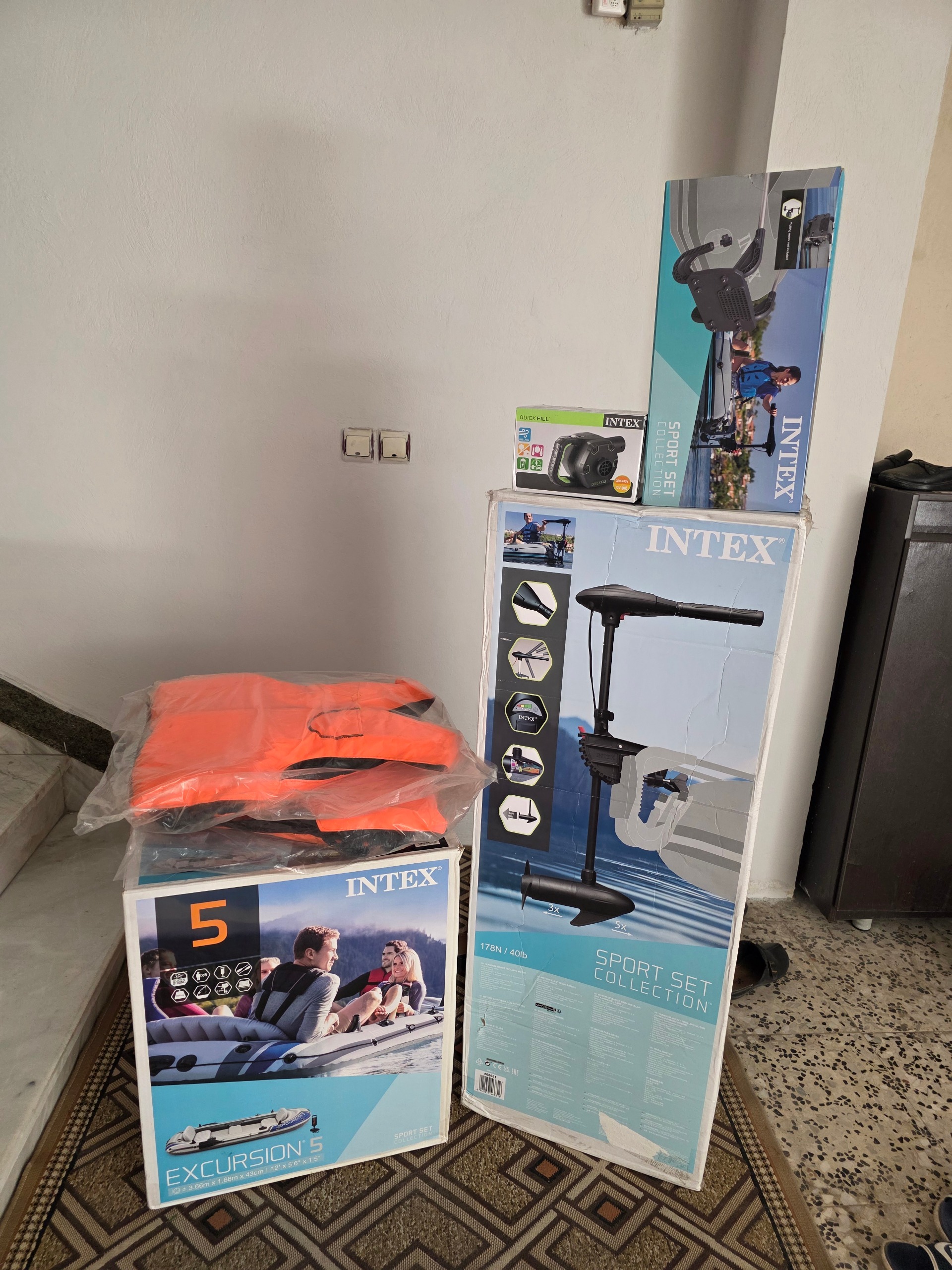 قایق بادی 5 نفره به همراه پایه نصب موتور و موتور برقی نو و بدون استفاده به صورت یکجا فروخته می شود زیر قیمت بازار