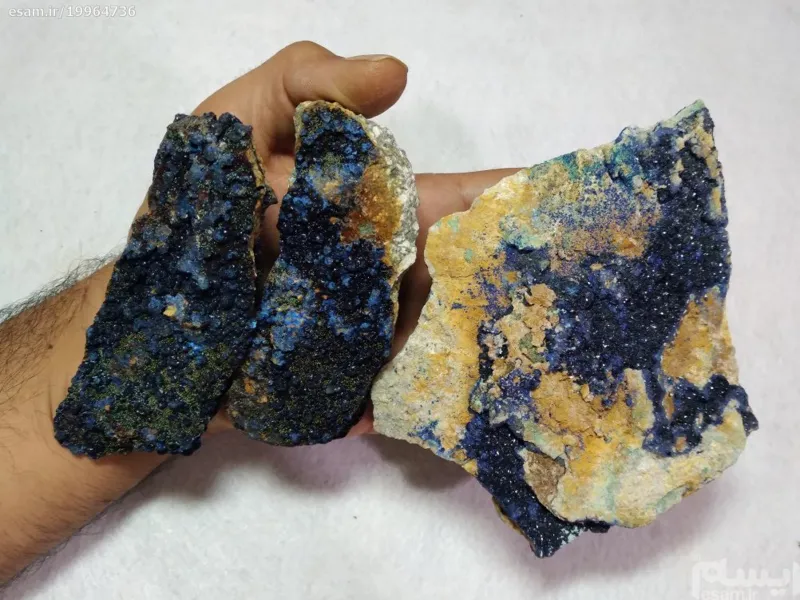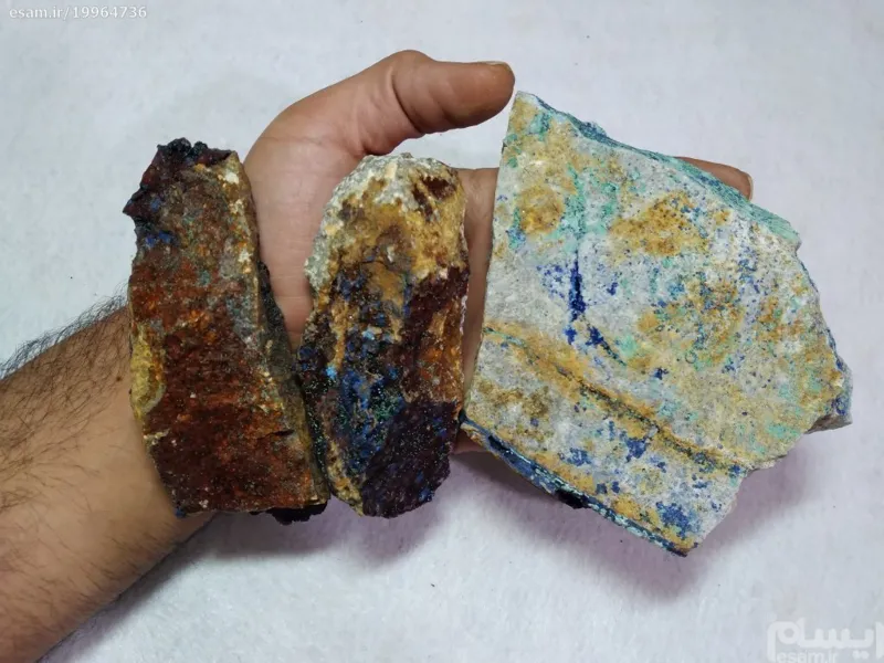 3 کلوخه بزرگ آزوریت و مالاکیت طبیعی بسیار زیبا