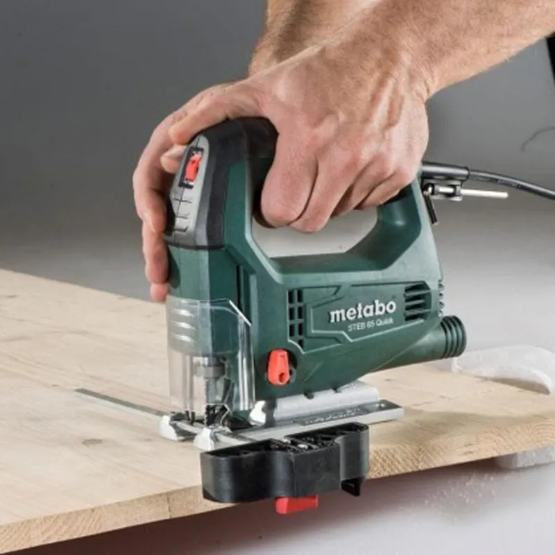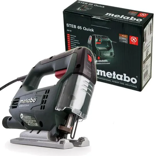 اره عمود بر متابو 450 وات مدل steb 65 quick دارای حالت پاندولی برای برش کاری سریعتر و استفاده بهینه از اره و تیغ اره است . همچنین این اره چکشی متابو دارای کلید الکترونیکی برای کنترل بر سرعت و قدرت اره می باشد . تیغ گیر این اره عمودبر متابو به صورت اتوماتیک است و نیازی به آچار و آلن نمی باشد ( در مورد تیغ گیر ها این نکته قابل توجه است که در هنگام گشیدن و جازدن تیغ هیچگاه نباید ضامن آن را رها کرد تا ضربه بزند زیرا باعث استحلاک سریع در تیغ گیر می شود ) . همچنین این اره عمود بر قابلیت برش فارسی با تغییر زاویه کفی آن می باشد .اره عمود بر متابو با داشتن وزن ایده ال 1.9 کیلو گرم به راحتی قابل حمل می باشد و علاوه بر آن کاربر می تواند سرعت حرکت دستگاه را تا چهار دور از 600 تا 3000 دور بر دقیقه تنظیم نماید . اره عمودبر STEB 65 QUICK metabo توانایی ایجاد 450 وات توان در خروجی موتور را دارد و می تواند قطعات چوبی را تا عمق 18 میلی متر برش دهد ، همچنین عمود بر متابو metabo در انجام کارهای طولانی مدت دارای قفل مخصوص نیز می باشد.