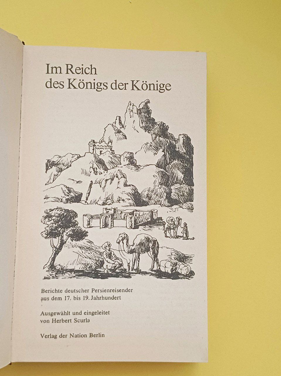 کتاب «Im Reich des Königs der Könige. Berichte deutscher Persienreisender aus dem 17. bis 19. Jahrhundert» که توسط هربرت اسکورلا گردآوری و ویرایش شده و در سال 1976 توسط انتشارات "Verlag der Nation" در برلین منتشر شده است، مجموعه ای است از گزارشها و سفرنامه های جهانگردان و محققان آلمانی که در فاصله قرن هفدهم تا نوزدهم به ایران سفر کرده اند
