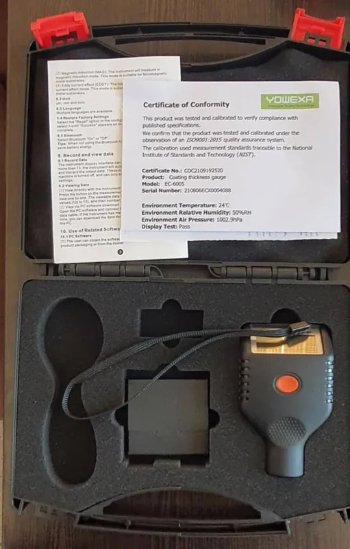 دستگاه ضخامت سنج رنگ مدل EC-600S یک دستگاه برای تشخیص رنگ اتومبیل میاشد ، این دستگاه ضخامت سنج رنگ با سرعت بالا ضخامت پوشش های رنگ را بر روی آهن و آلومینیوم نمایش میدهد . این دستگاه با بلوتوث به گوشی همراه شما متصل میشود و شما میتوانید کلیه اطلاعات را ذخیره و تحلیل کنید . رنج اندازه گیری این ضخامت سنج 0 تا 2000 میکرون میباشد . به دلیل داشتن فقط یک دکه کار کردن با این مدل خیلی راحت است . این دستگاه مناسب مراکز تشخیص رنگ اتومبیل میباشد .