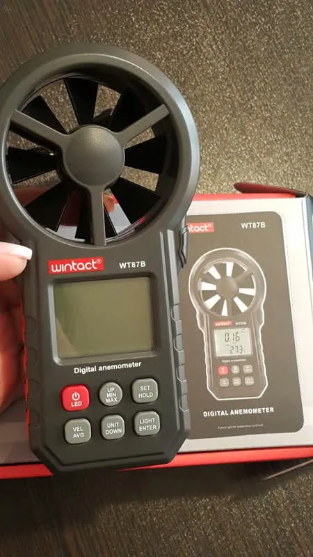 بادسنج پراب سر خود وینتکت WINTACT WT87A دستگاهی سه منظوره جهت اندازه گیری سرعت باد با پنج واحد مختلف و اندازه گیری دما با دو واحد و رطوبت به کار میرود. این بادسنج دارای صفحه نمایشگر دیجیتالی است که سرعت باد را با پنج واحد متر بر ثانیه، کیلومتر بر ساعت، فوت بر دقیقه، گره و مایل بر ساعت و دما را با دو واحد سلسیوس و سانتیگراد نمایش می دهد.از ویژگی های این دستگاه اندازه گیری حجم هوا CMM و CFM میباشد.این دستگاه از طریق بلوتوث توسط اپلیکشن قابلیت اتصال به موبایل دارد. آنمومتر ارزان قیمت وینتکت WINTACT WT87A یک مینی اندازه گیر سرعت باد و دما است که سرعت باد را تا 30 متر بر ثانیه و دما را از10- تا 50+ درجه سانتی گراد اندازه گیری می نماید.این دستگاه میتواند حجم هوا CMM0-999900m³/min و CFM0-999900ft³/min و رطوبت را از 10 تا 90 درصد اندازه گیری میکند. همچنین آنمومتر و ترمومتر وینتکت مدل WINTACT WT87B توانایی محاسبه مقادیر ماکزیمم و میانگین سرعت باد را دارا است. بادسنج پراب سرخود و دماسنج وینتک مدل WINTACT WT87A برای صرفه جویی در مصرف باتری اگر به مدت 10 دقیقه مورد استفاده قرار نگیرد به طور خودکار خاموش می شود.