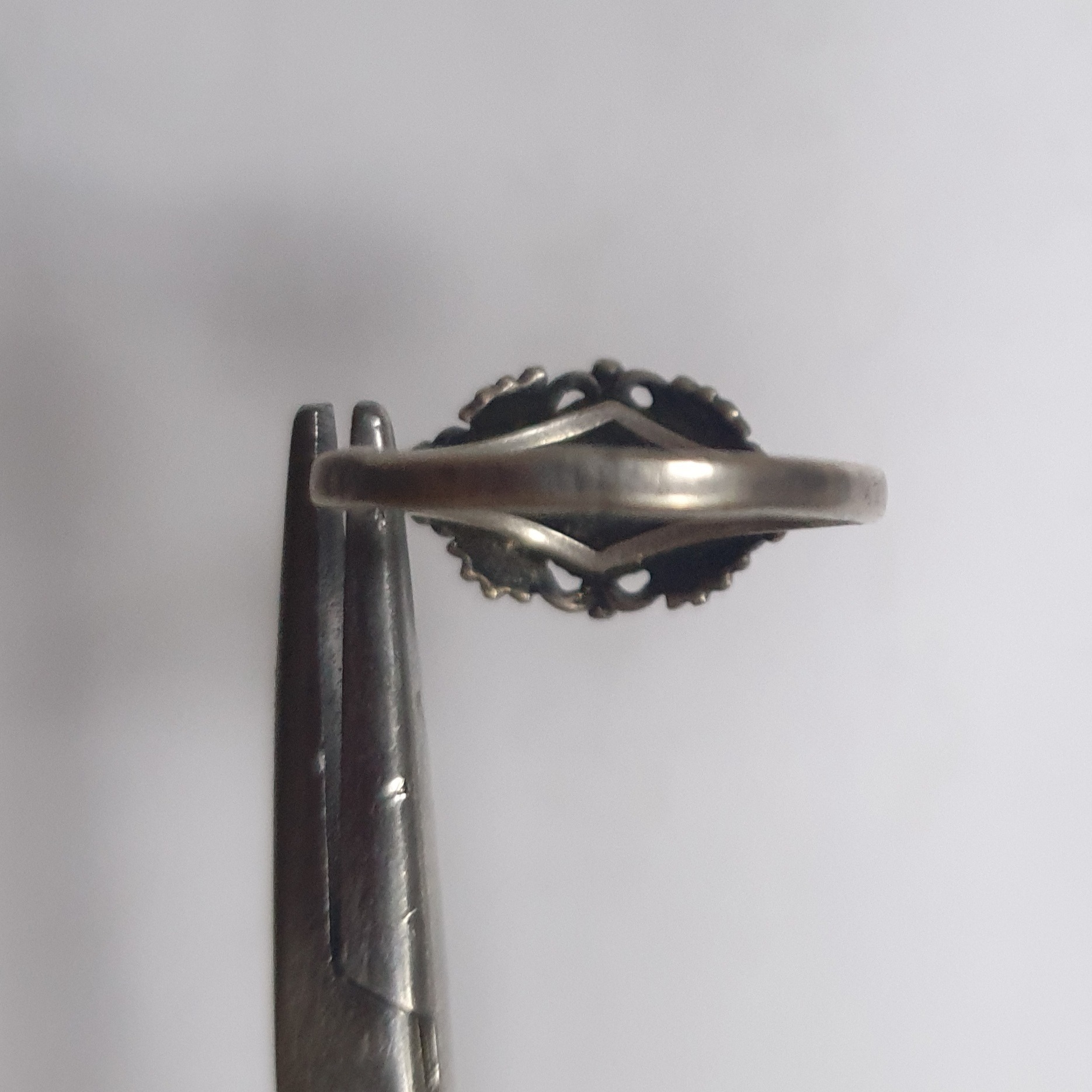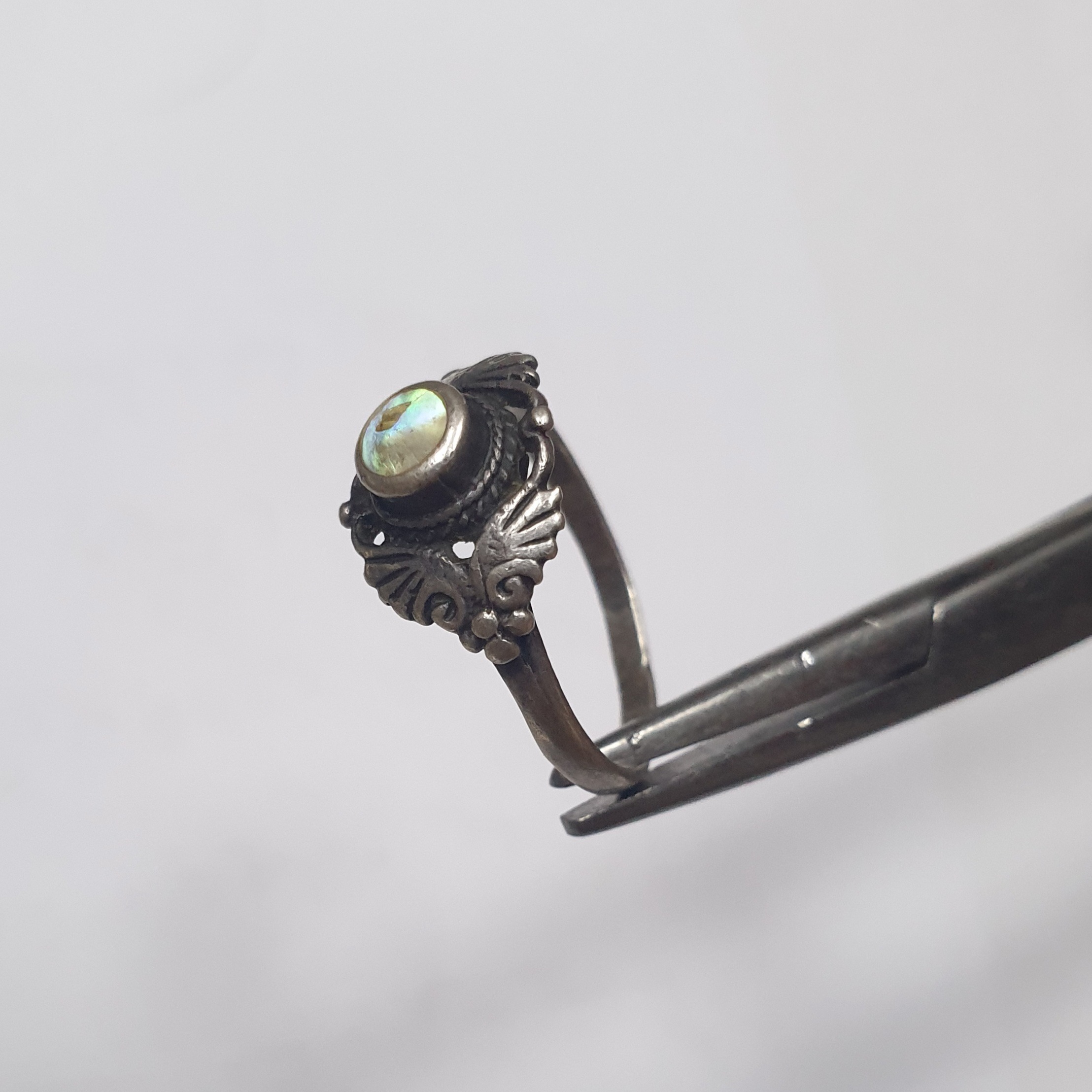 انگشتر قدیمی نقره زنانه با نگین صدف خاص معدنی