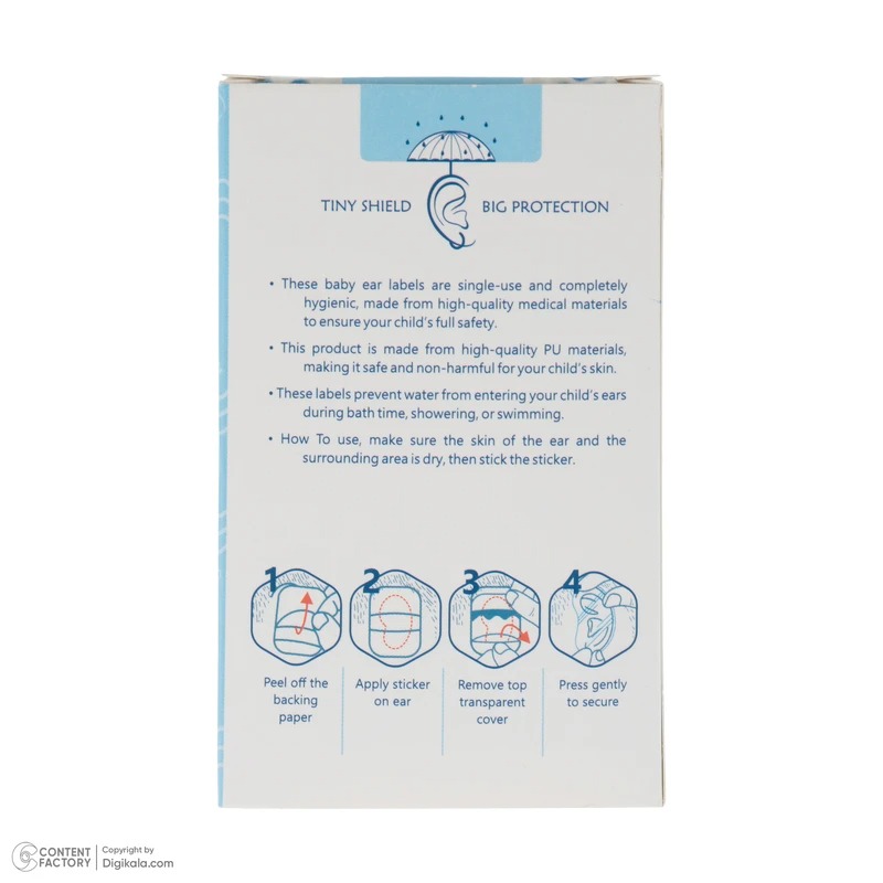 محافظ گوش حمام نوزاد نوزی مدل Tiny Shield بسته 30 عددی، پاسخی دقیق به نیاز نوزادان در مراحل حساس رشد برای محافظت از گوش در برابر نفوذ آب است. در این بسته، 30 عدد برچسب گوش ضدآب قرار دارد که در دو سایز متفاوت ارائه شدهاند: 24 عدد با ابعاد 50 در 35 میلیمتر برای نوزادان 0 تا 3 ماه، و 6 عدد با ابعاد 70 در 45 میلیمتر برای نوزادان 3 ماهه تا حدود 5 سال. این تنوع سایز باعث شده تا والدین بدون نیاز به برش دستی یا کوچکسازی برچسبها، بهراحتی بتوانند از آنها متناسب با سن نوزاد استفاده کنند. این برچسبها از جنس PU پزشکی با لایههای محافظ شامل چسب اکریلیک، فیلم ضدآب و پوشش PET تولید شدهاند که علاوه بر ایمنی برای پوست حساس نوزاد، کارایی ضدآب بالایی نیز دارند. با چسباندن برچسب روی سطح بیرونی گوش، مانعی کامل در برابر آب ایجاد میشود، بدون آنکه با فضای داخلی گوش تماس برقرار کند. این موضوع موجب شده تا محافظ گوش Tiny Shield یکی از امنترین راهکارها برای پیشگیری از عفونت گوش در نوزادان و خردسالان محسوب شود. برچسبها سبک، نازک، شفاف و یکبار مصرف هستند. این ویژگیها، در کنار طراحی بهداشتی و بستهبندی تخصصی، Tiny Shield را به محصولی کاربردی، مطمئن و مناسب برای مراقبت روزمره از نوزاد در زمان استحمام تبدیل کرده است.