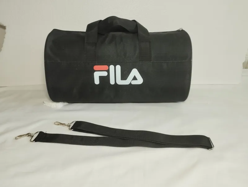 ساک ورزشی طرح فیلا تمام برزنت دوخت تمیز و با دقت چاپ حرارتی و یراق فلز ( سرزیپ-بندگیرو..)