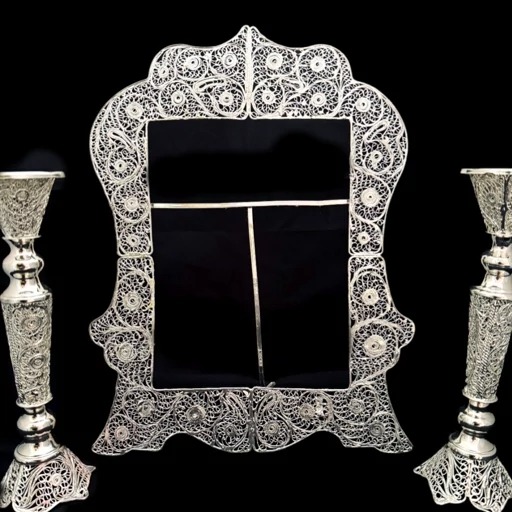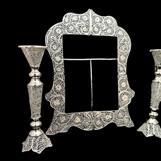 ظروف ملیله کاری قاب مستطیل شماره چهارشمعدان سرکوتا