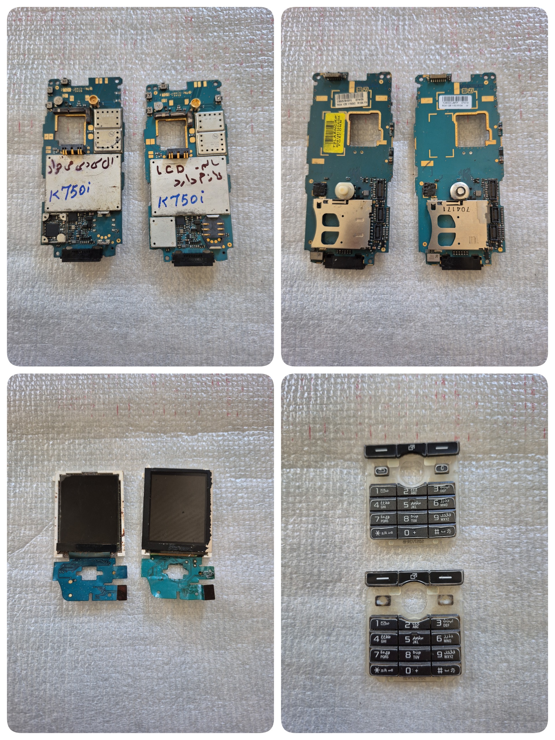 دوتا ال سی دی ظاهرا سالم ولی تست نشده .همراه دوعددبرد اصلی قدیمی که تعمیری نیستند هیچ تعمیری روشون انجام نشده و همه چیشون دارند یکی از برد ها جای سیم کارت خراب است ونیاز به تعمیر دارد .