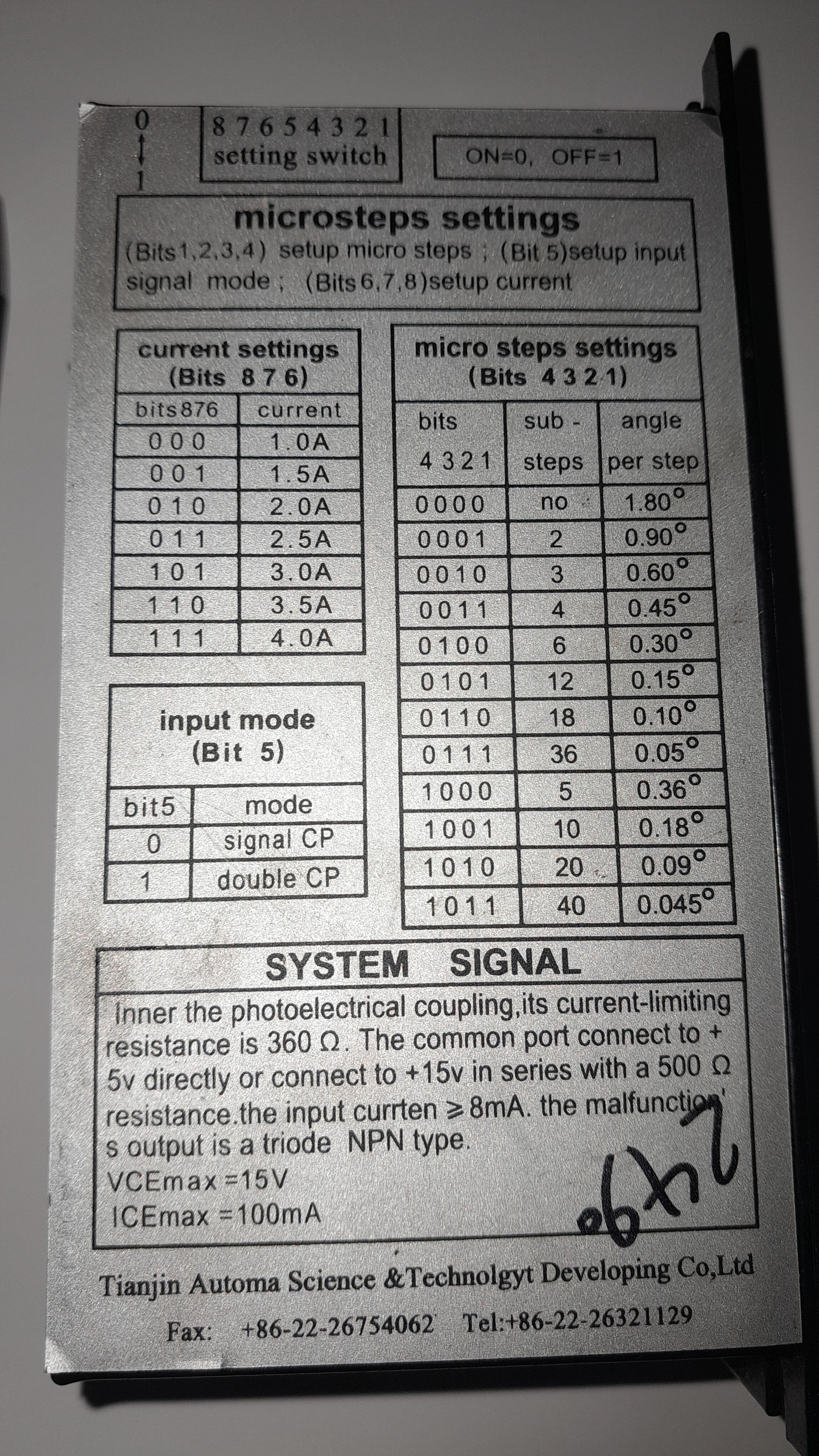 درایو استپ موتور از یک تا چهار آمپر انتخاب با کلید طبق جدول روی بدنه