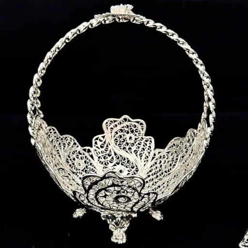 ظروف ملیله کاری کشکول زنبیل دسته دار و گلدان حرمی