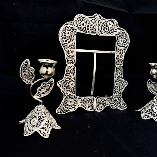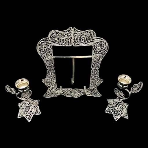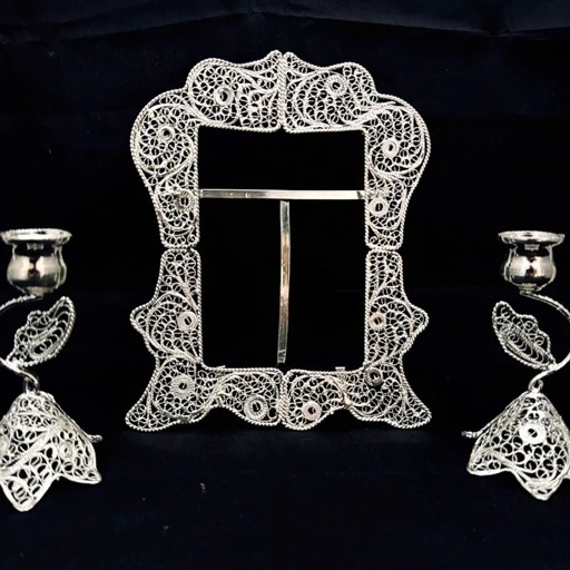 ظروف ملیله کاری قاب مستطیل شماره 2 و شمعدان اشکی