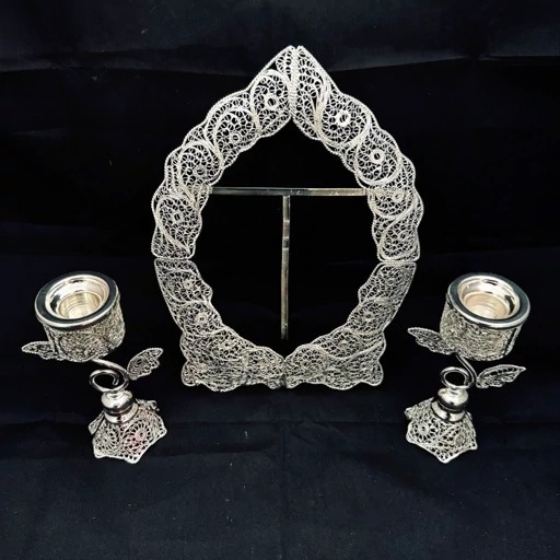 ظروف ملیله کاری قاب آینه و شمعدان طرح اس