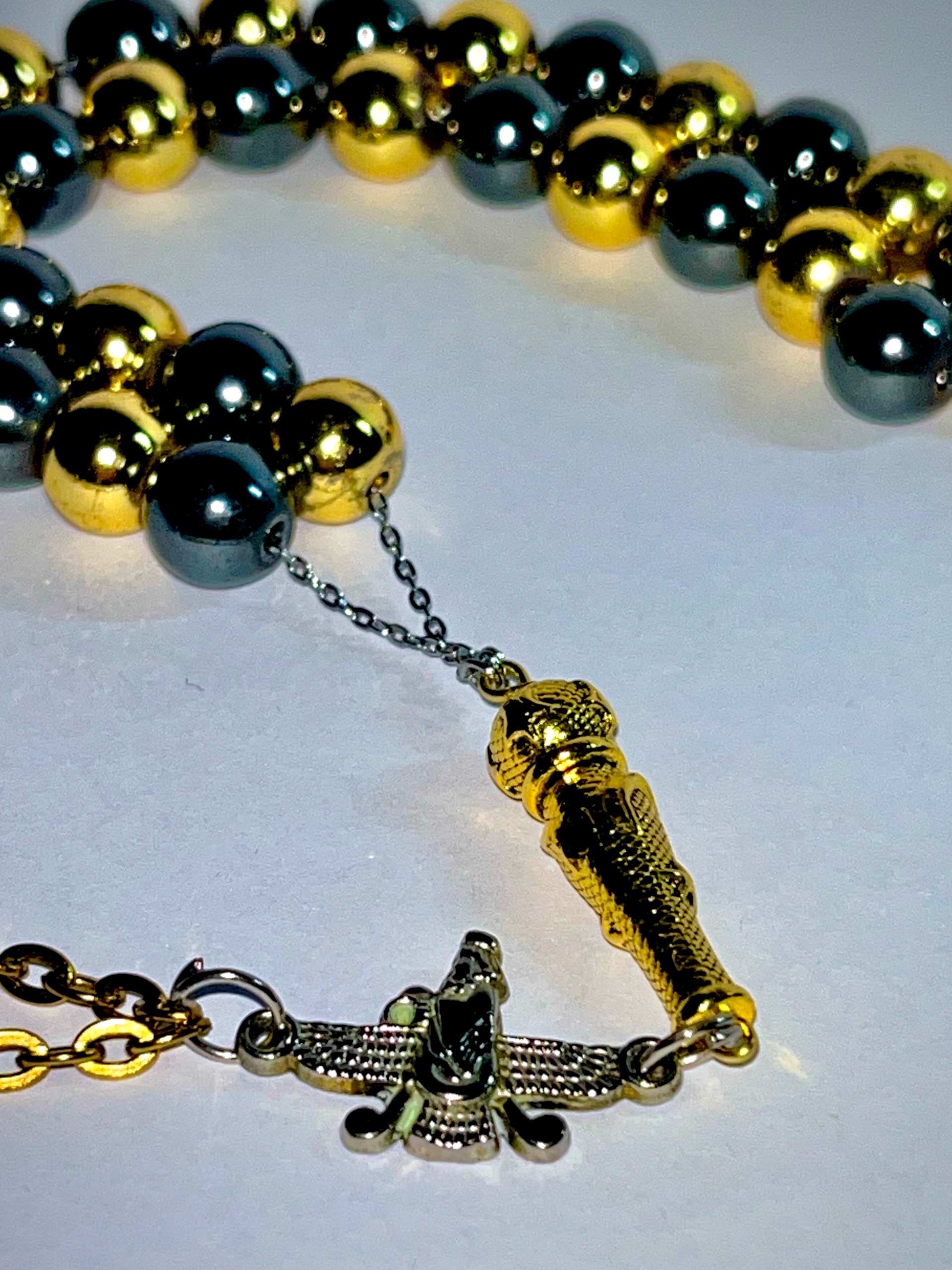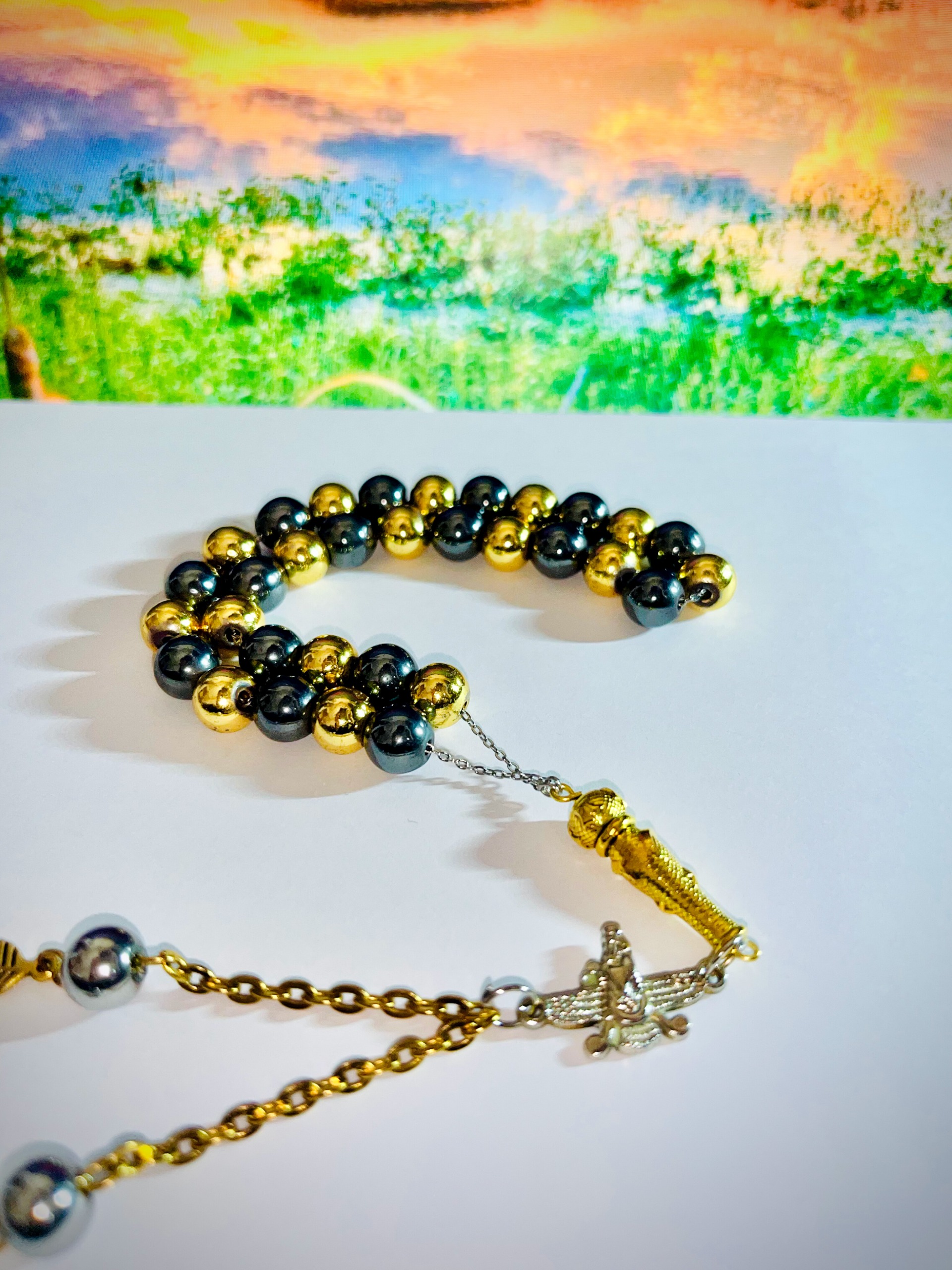 درست شده با استفاده از زنجیر محکم و ریز رنگ ثابت، با دانه های رنگ ثابت، امامه دست ساز رنگ ثابت، توصیه میشود استفاده درست شود و با آن بازی نشود