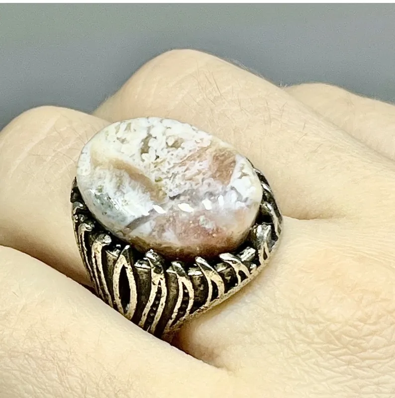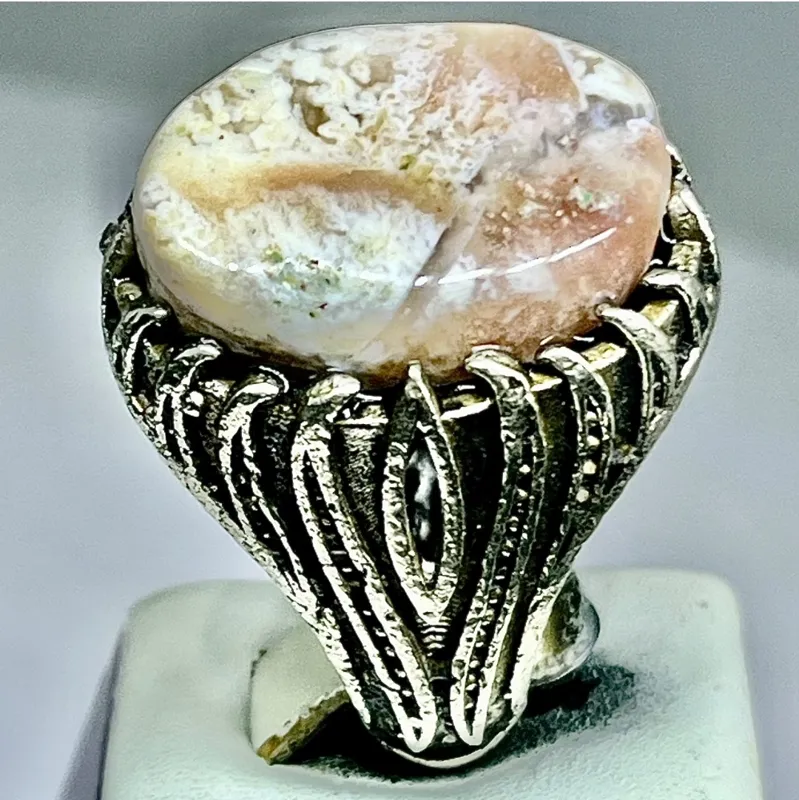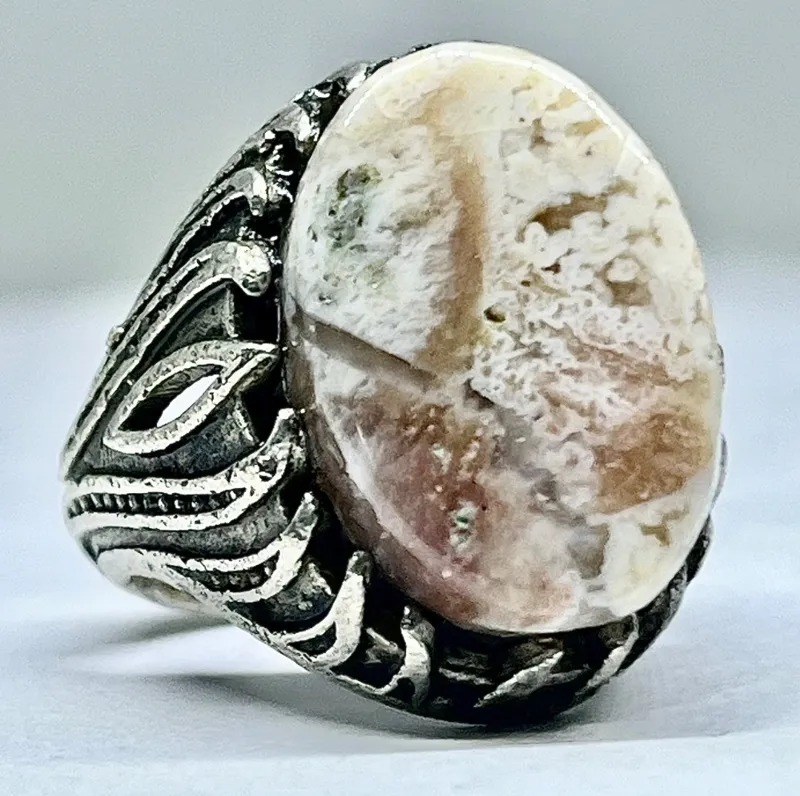 انگشتر مرجان خوش ساخت رگه دار رکاب شیرازی