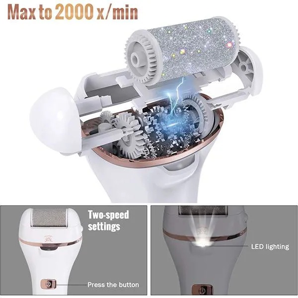 حذف سریع پوست سخت و پینه: سوهان پا به شما کمک می کند تا پوست پاشنه ترک خورده، خشک و ضخیم را به طور خودکار در عرض چند دقیقه پاک کنید، بدون نیاز به حرکت دستی آن.